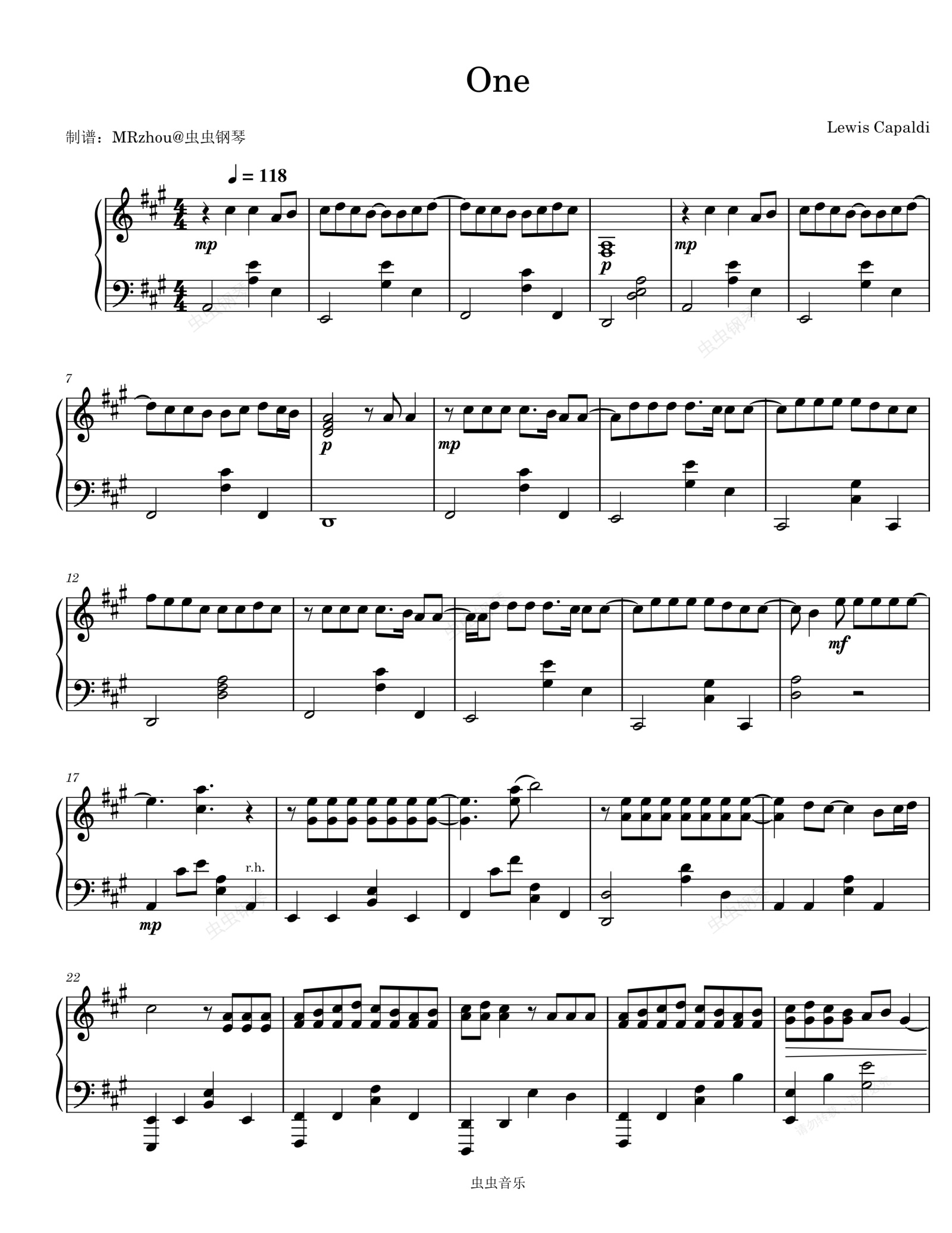 钢琴谱:One - Lewis Capaldi