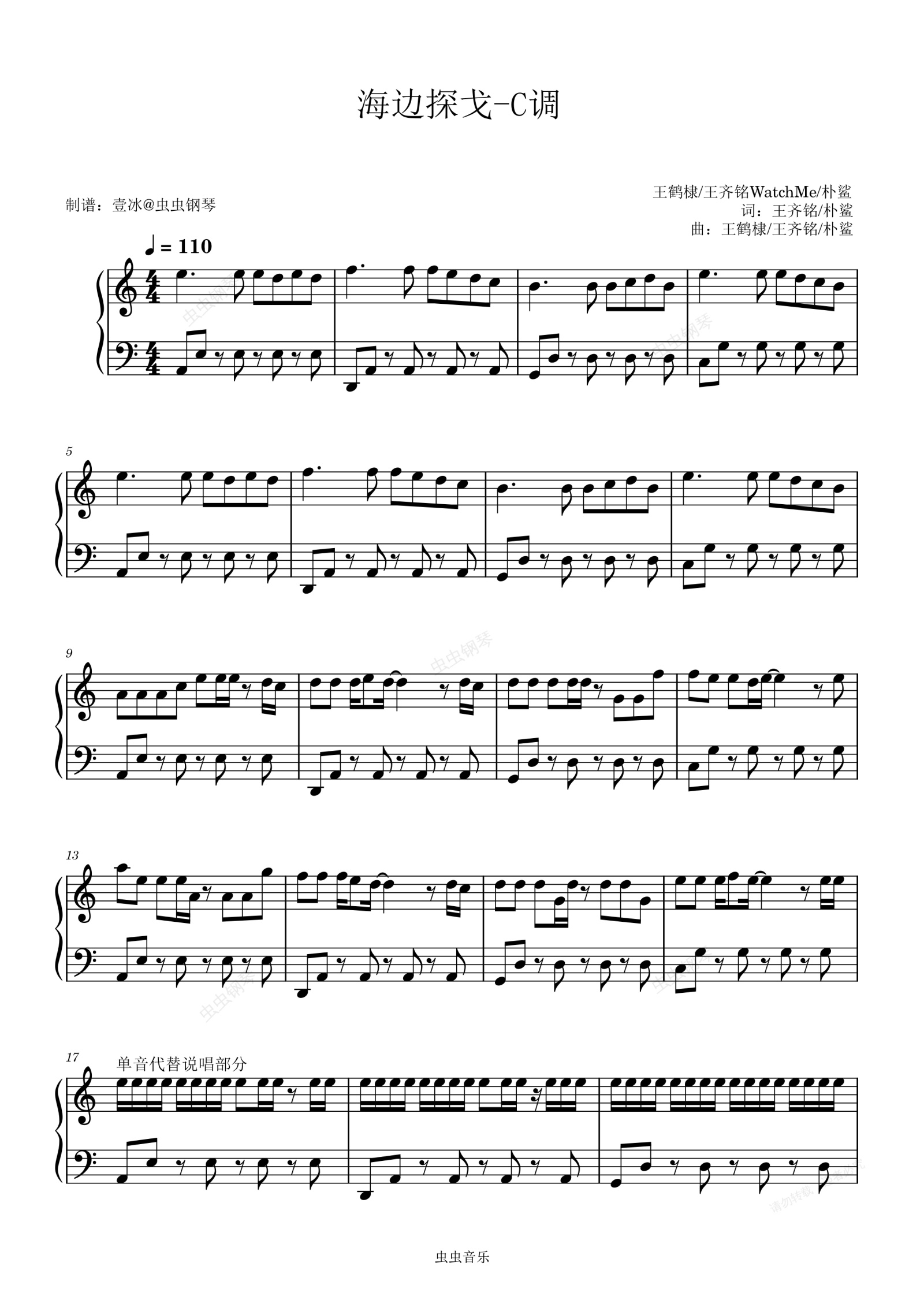 钢琴谱:海边探戈//王鹤棣/王齐铭WatchMe/朴鲨 - C调