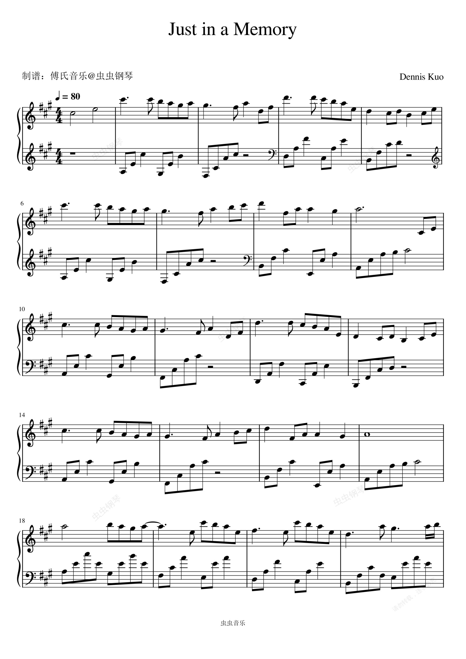 钢琴谱:Just in a Memory - Dennis Kuo