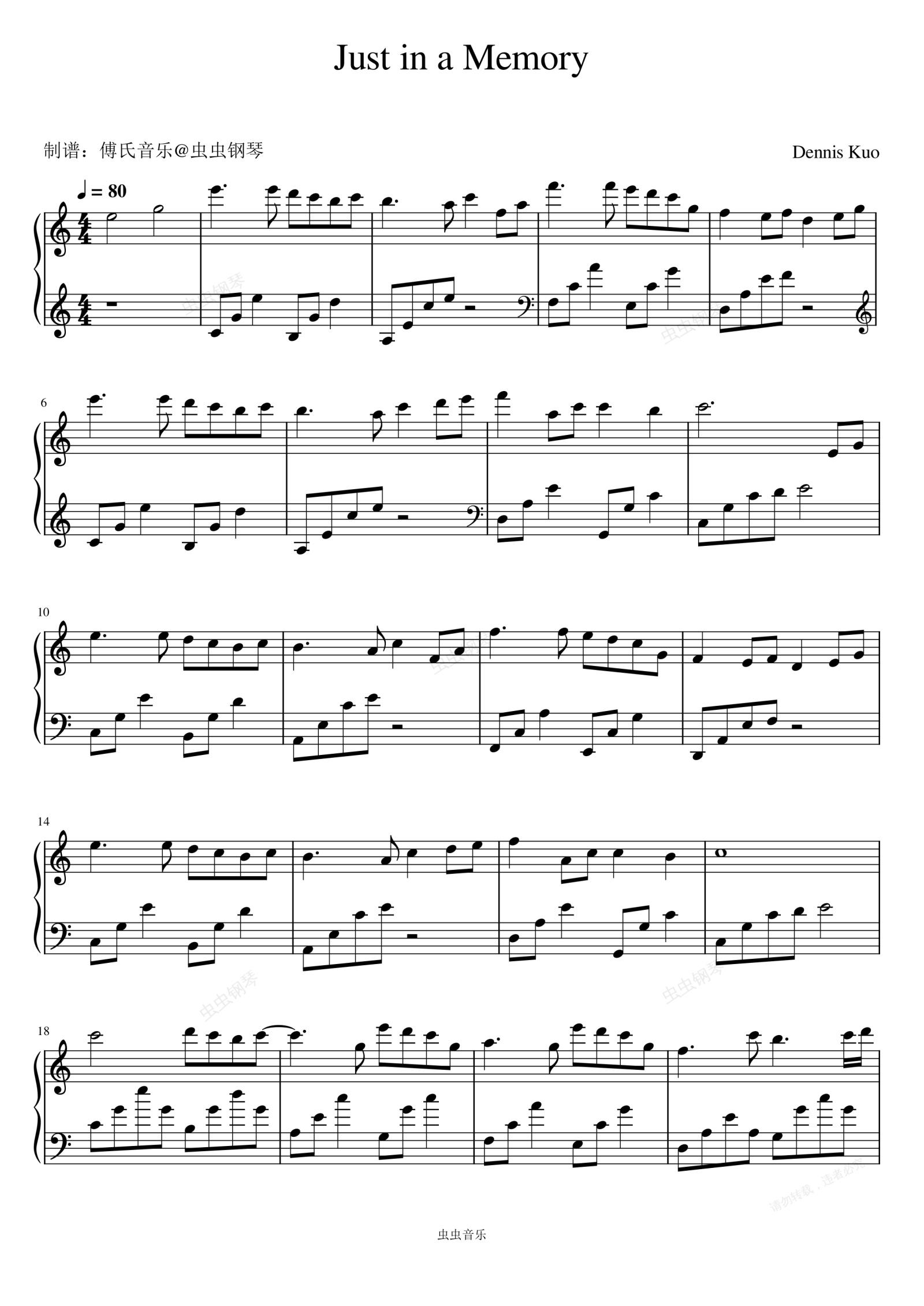 钢琴谱:Just in a Memory - Dennis Kuo