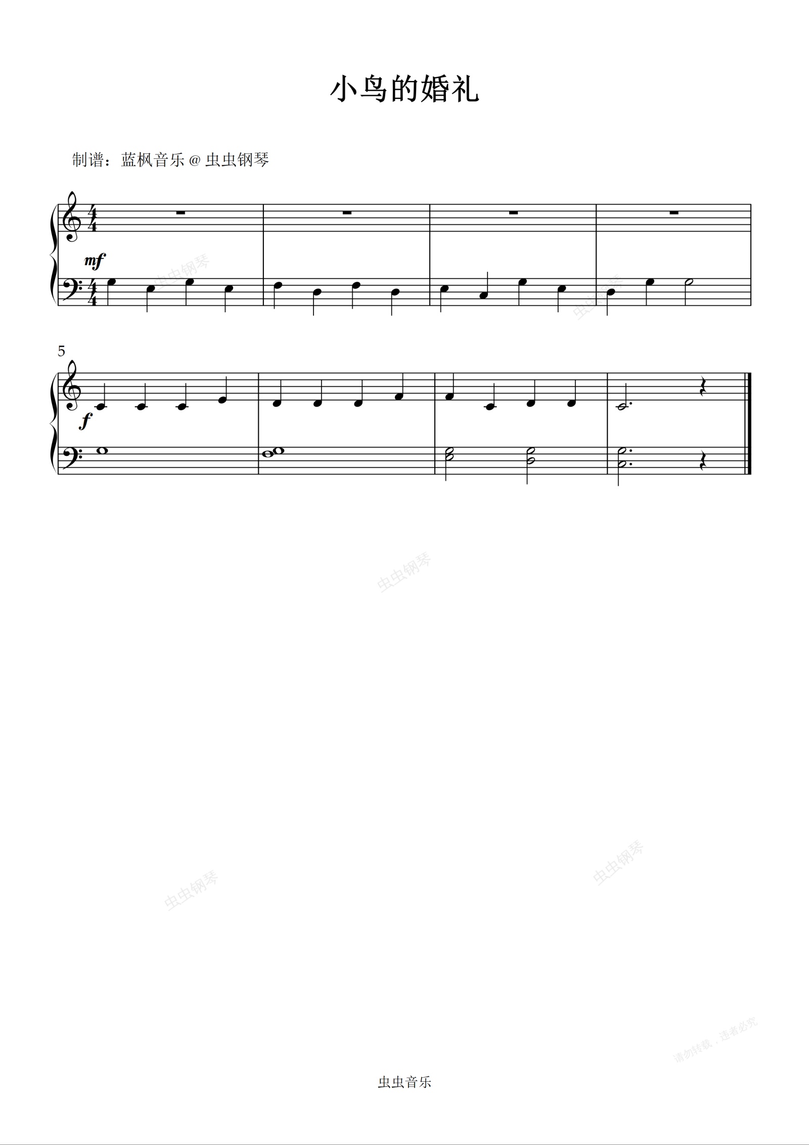 您的位置: 首页 > 钢琴谱库 > 小鸟的婚礼钢琴谱-佚名