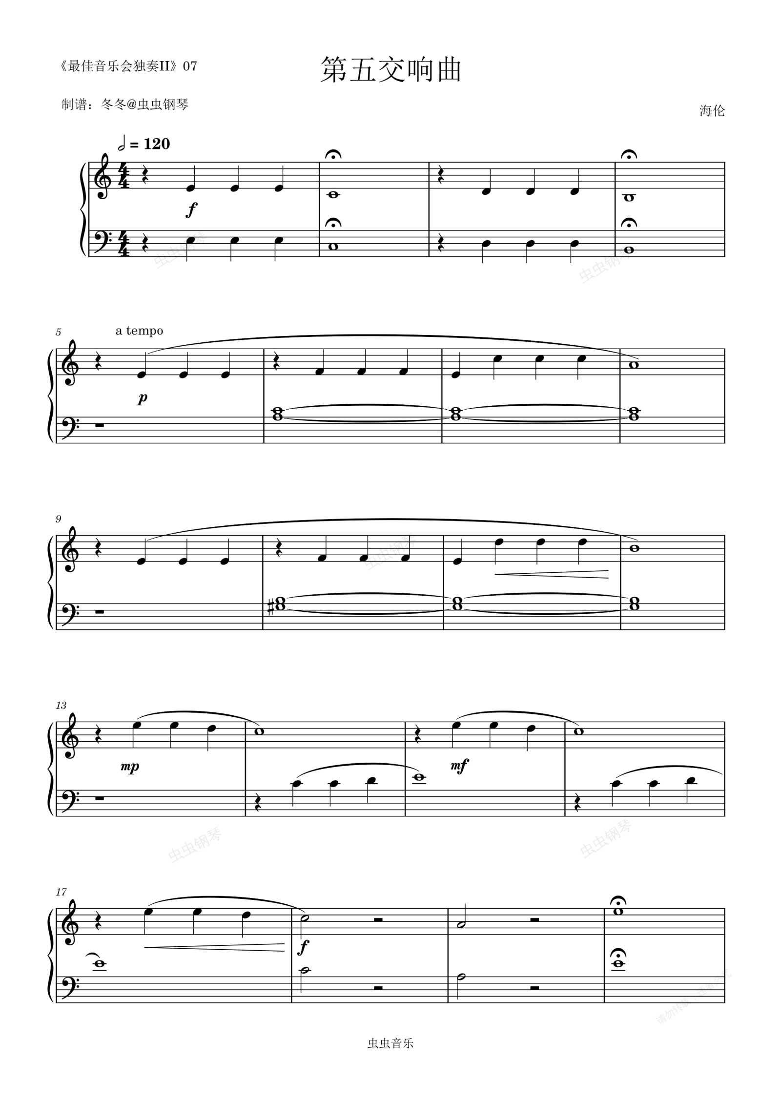 您的位置: 首页 > 钢琴谱库 > 第五交响曲钢琴谱-海伦