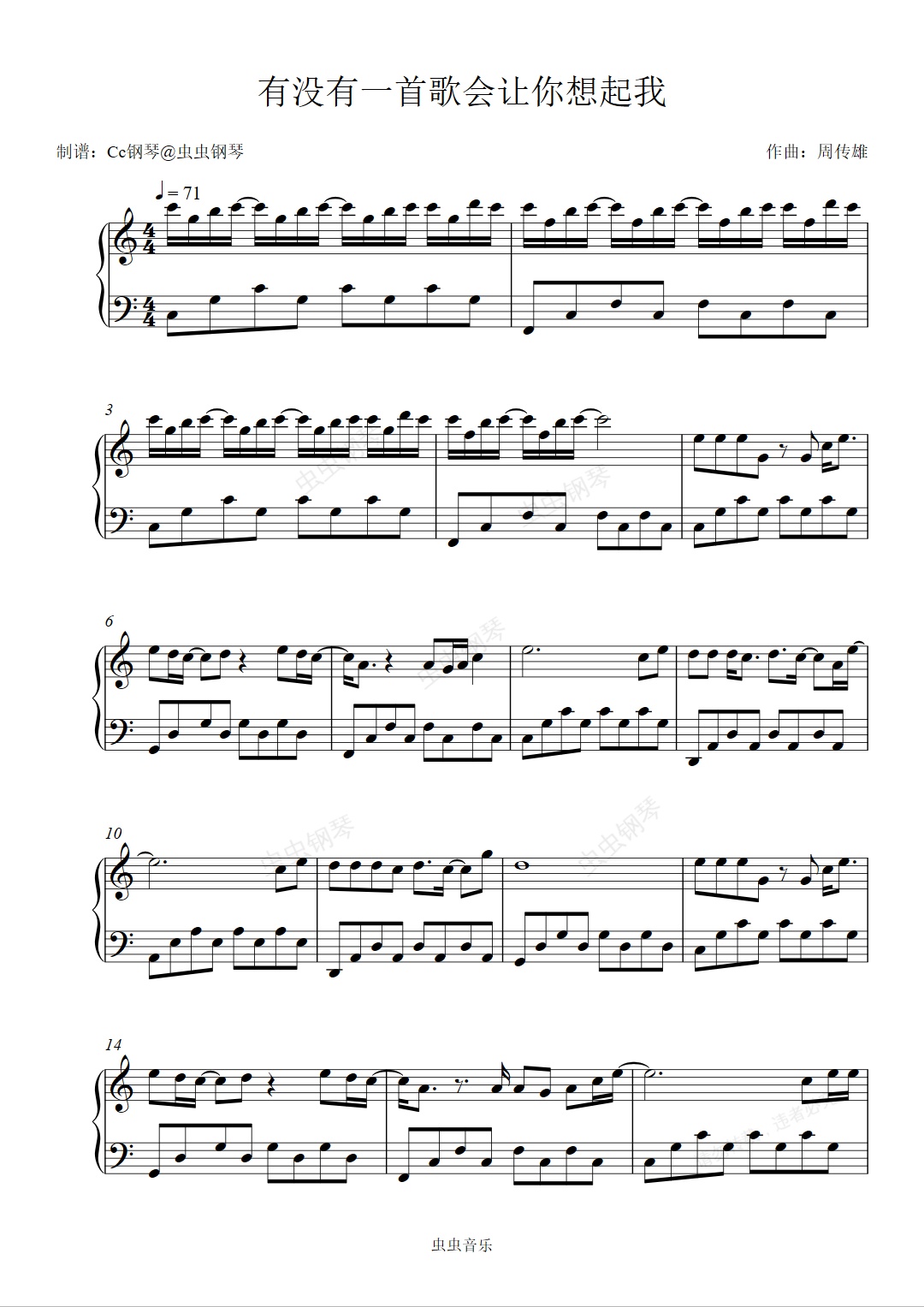 钢琴谱:有没有一首歌会让你想起我 C调 好听易上手