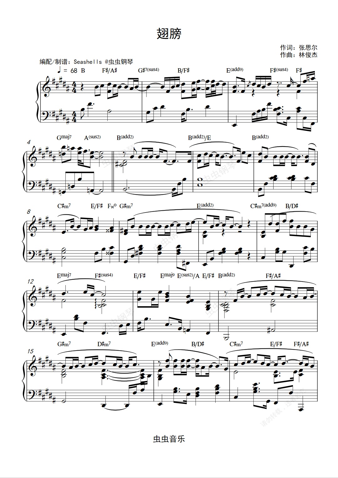 钢琴谱:林俊杰-《翅膀》精编钢琴独奏 原调