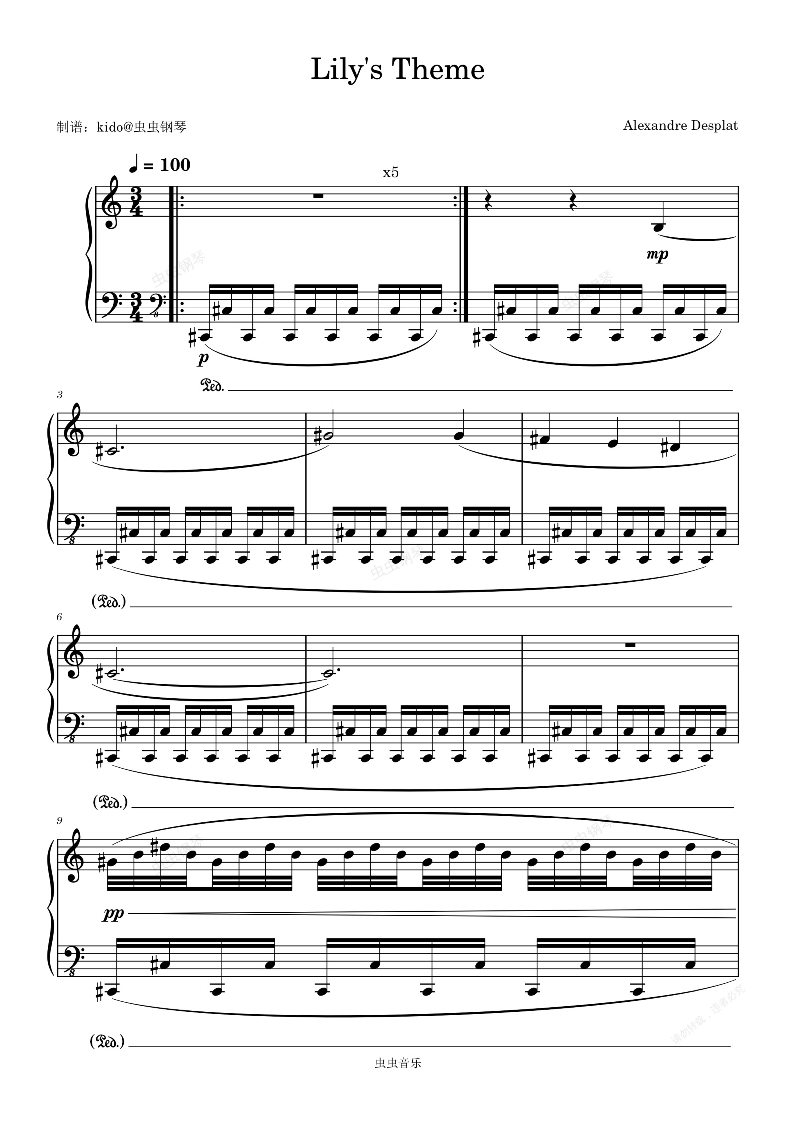 钢琴谱:Lily's Theme (电影《哈利.波特与死亡圣器》下)Alexandre Desplat