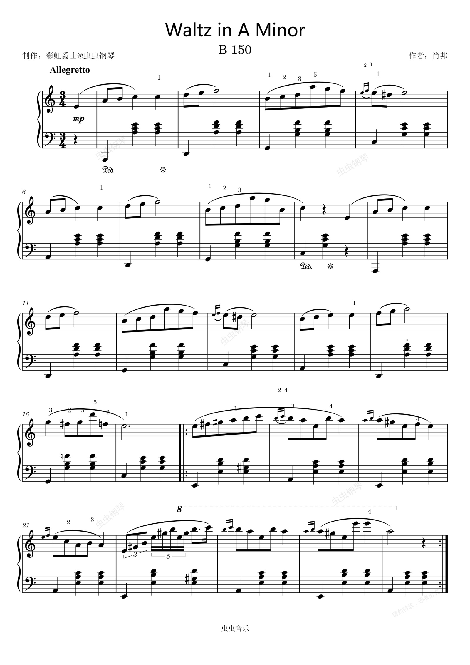钢琴谱:Waltz in A Minor a小调华尔兹 b150 肖邦 完整版