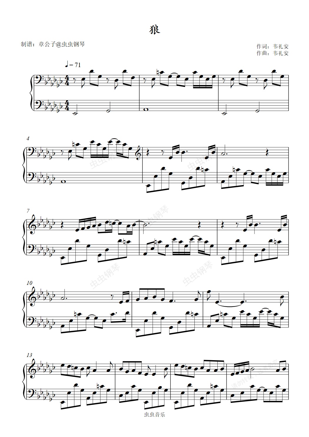 钢琴谱:狼 - 韦礼安 精简版 原调bG