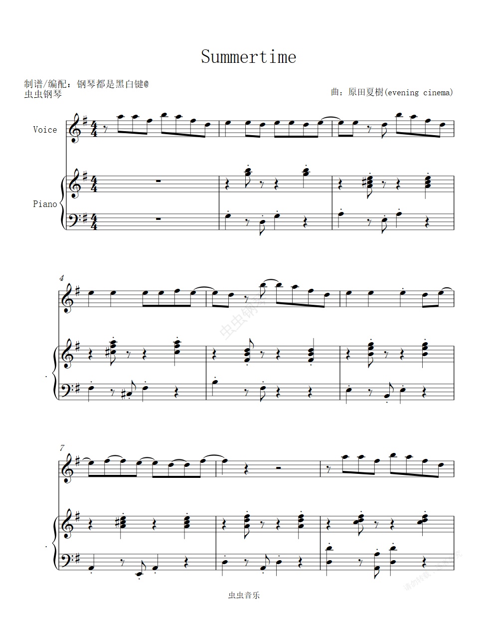 钢琴谱:summertime (夏日时光) 你一定听过的神曲 【四手连弹版】