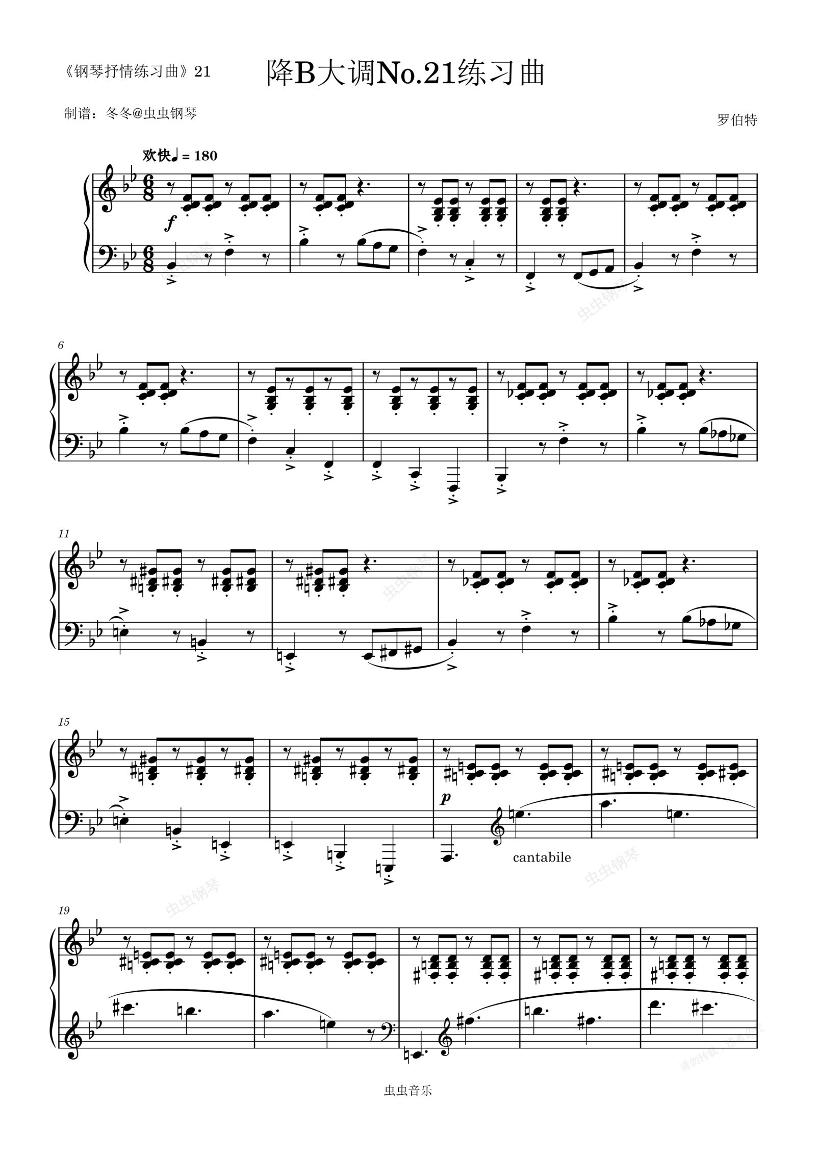 钢琴谱:降B大调No.21练习曲