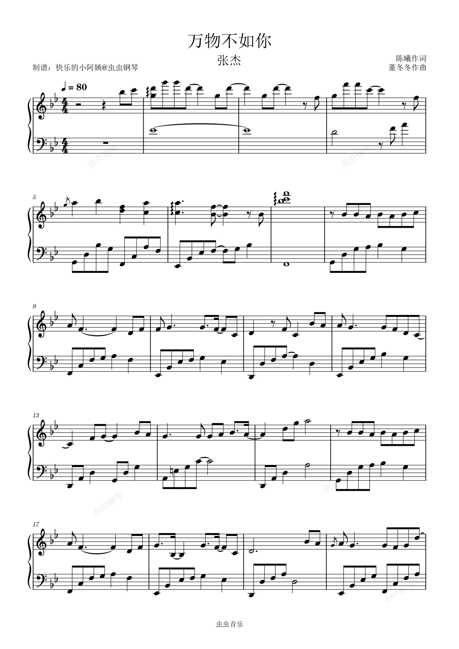 钢琴谱:万物不如你《长相思》主题曲-带歌词