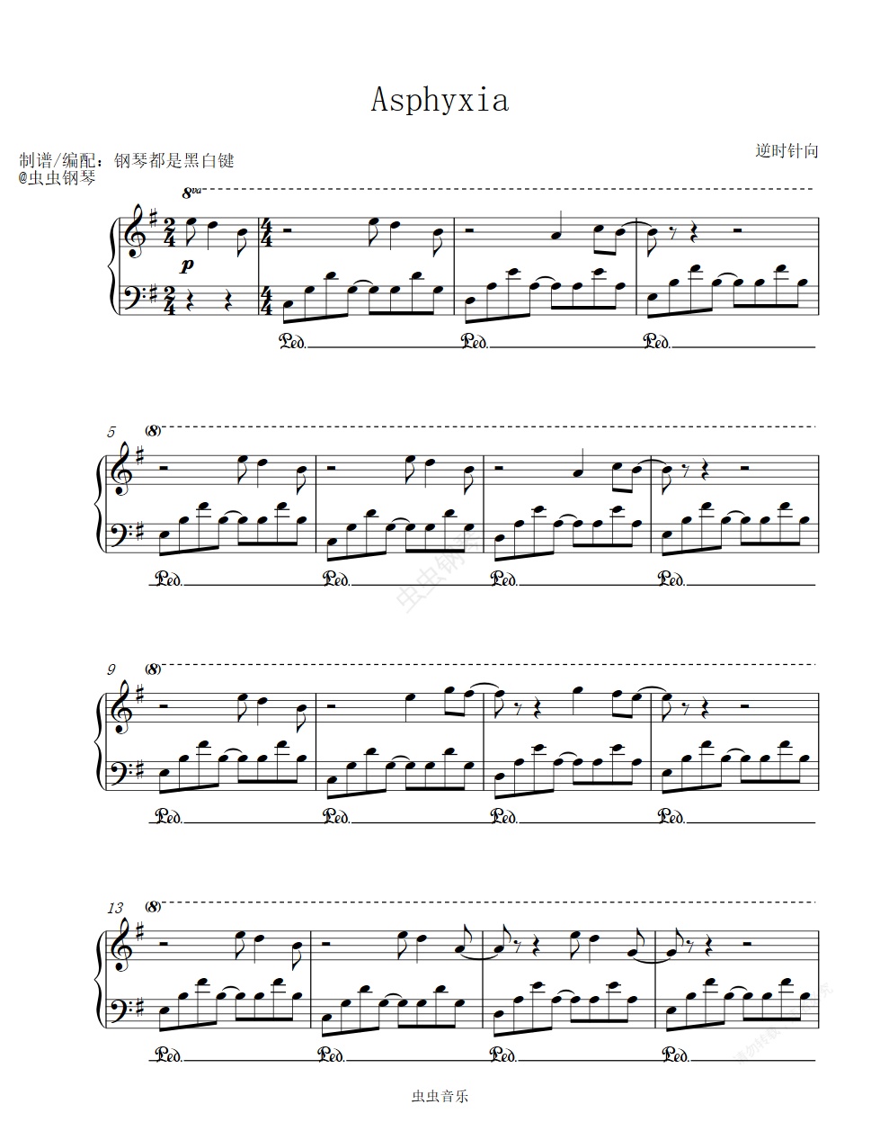 钢琴谱:Asphyxia - 逆时针向 【钢琴轻音乐 | 舒缓音乐】
