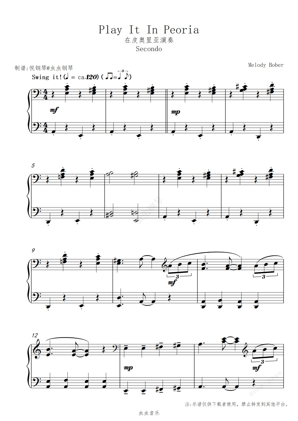 钢琴谱:在皮奥里亚演奏//Play It In Peoria-四手联弹【调皮-欢快】