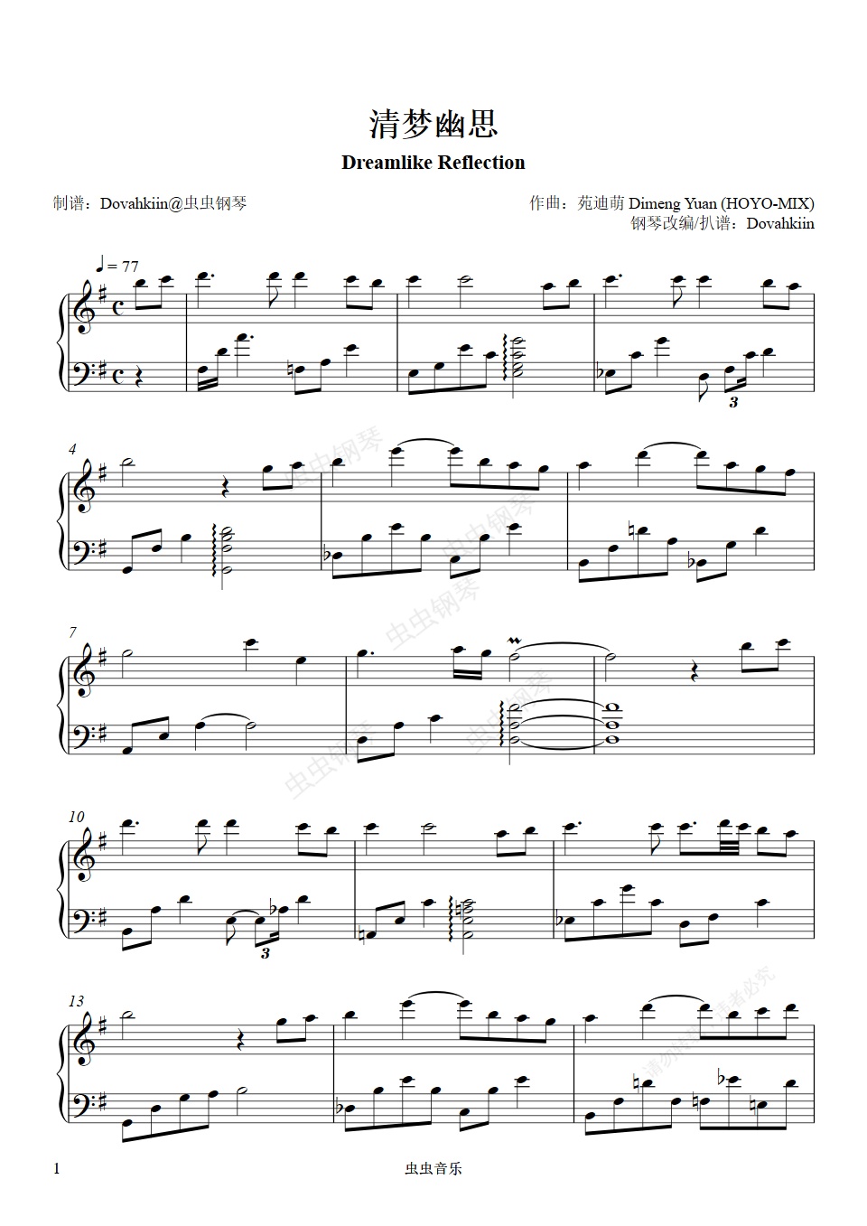 钢琴谱:Dreamlike Reflection 清梦幽思