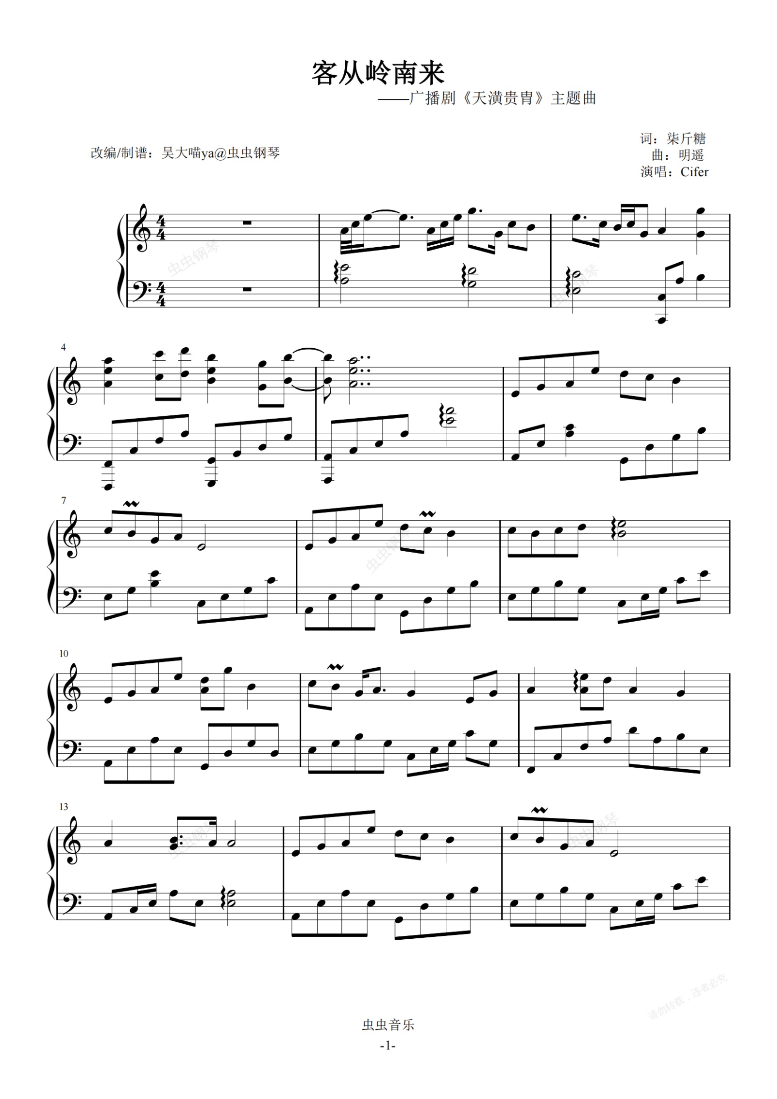 钢琴谱:《客从岭南来》—广播剧《天潢贵胄》主题曲 C大调