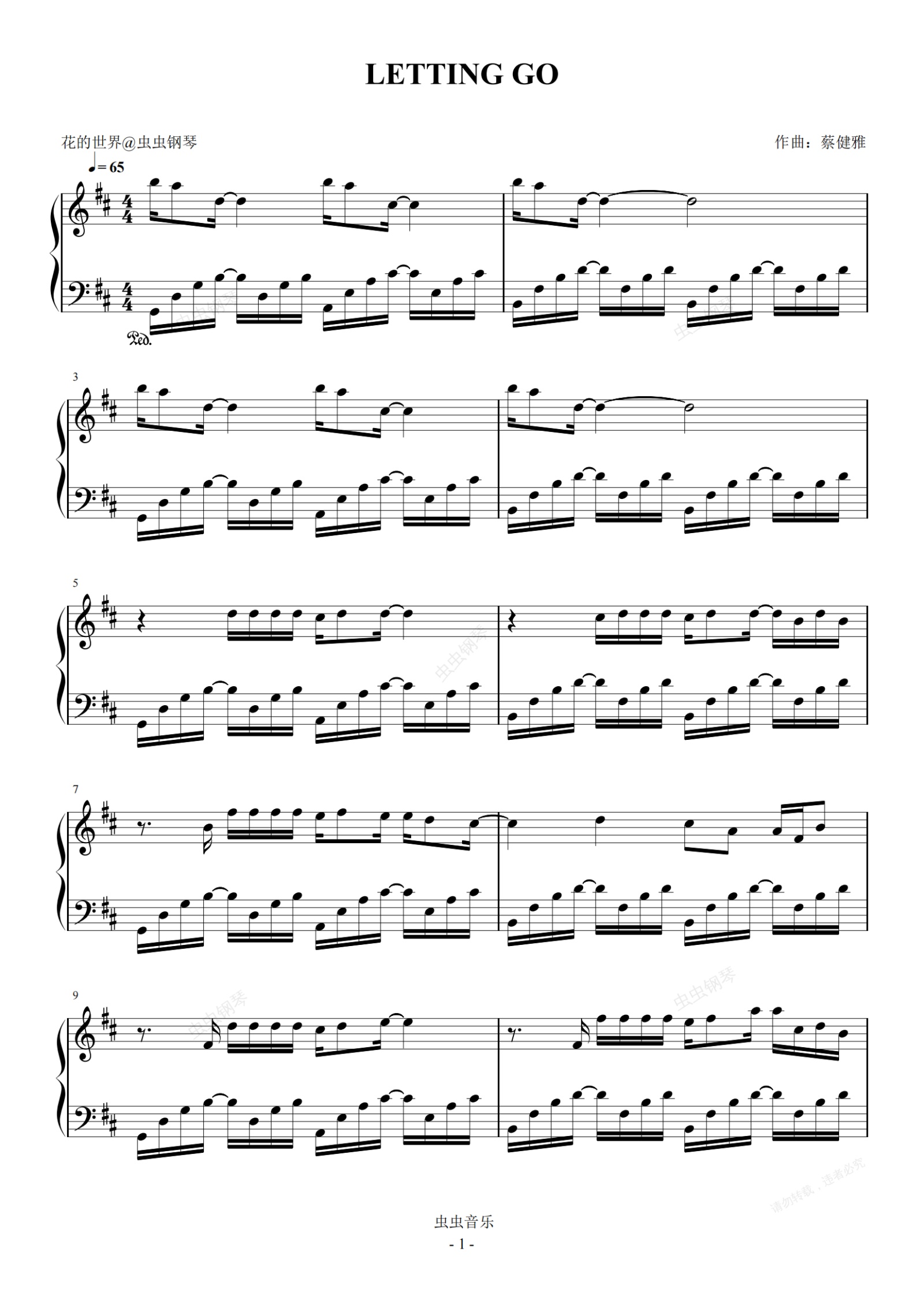钢琴谱:LETTING GO 原调简易版 蔡健雅