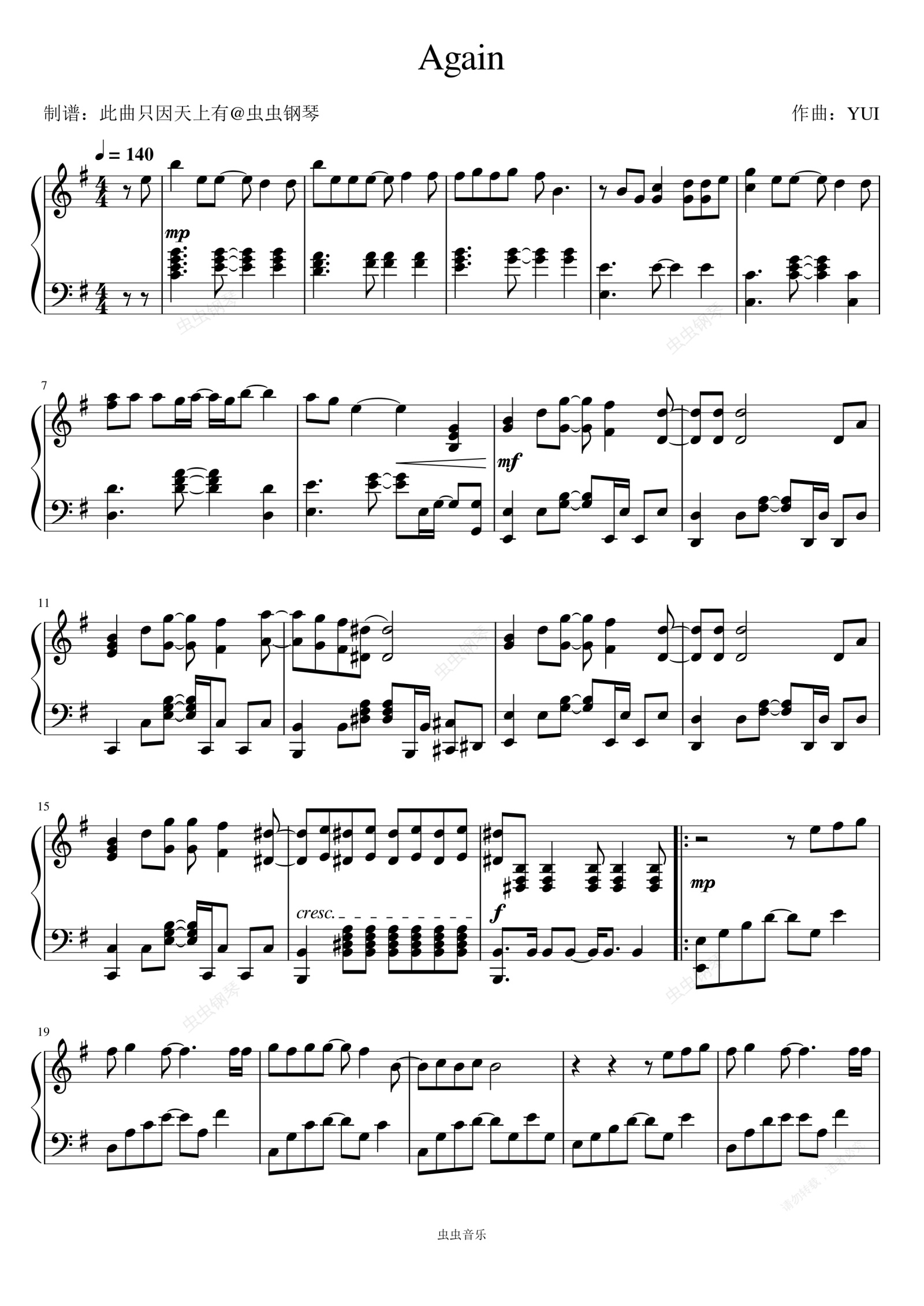 钢琴谱:钢之炼金术师Again-YUI