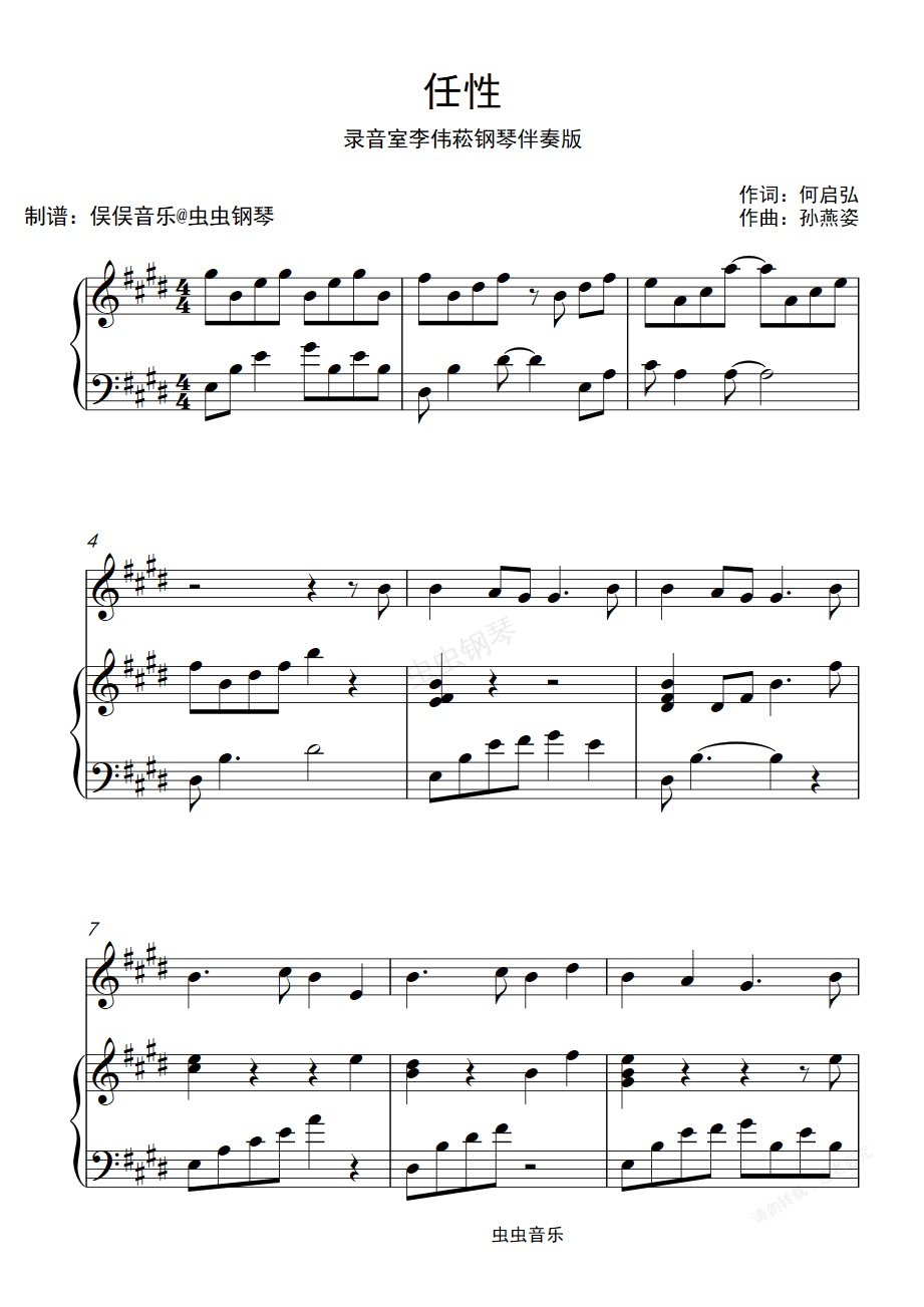 钢琴谱:任性【录音室李伟菘钢琴伴奏版】