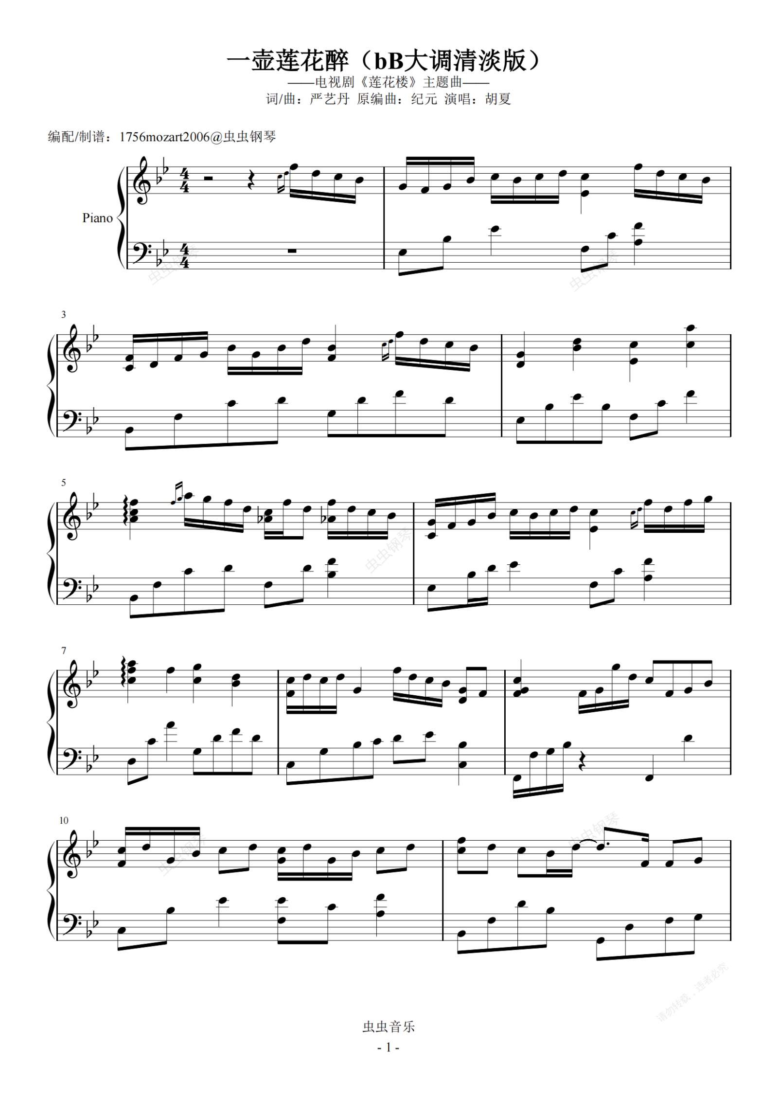 钢琴谱:一壶莲花醉(bB大调清淡版)