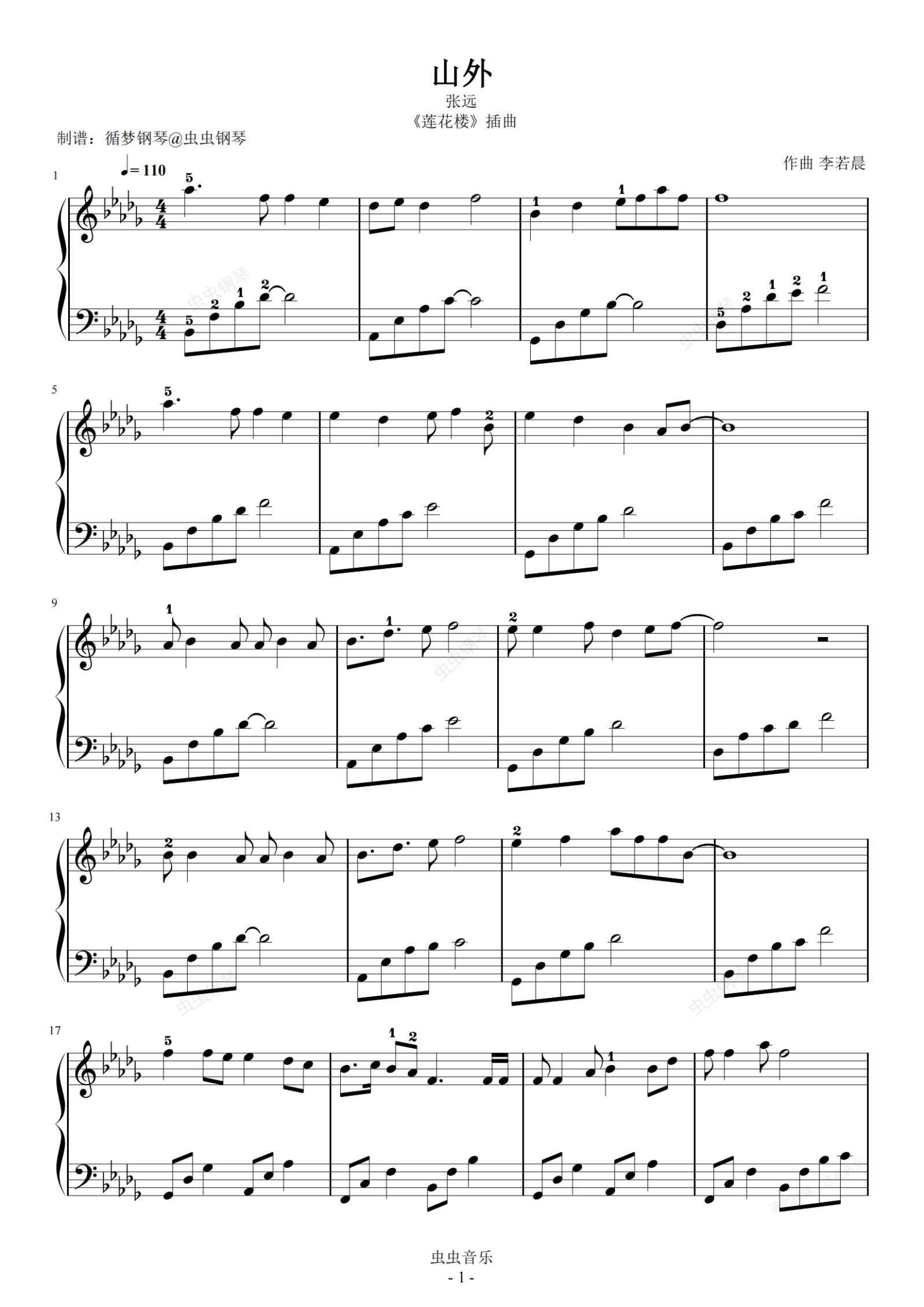 钢琴谱:山外