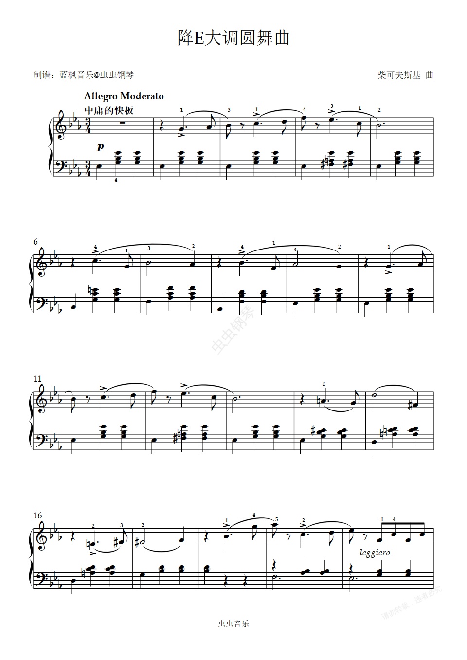 钢琴谱:降E大调圆舞曲