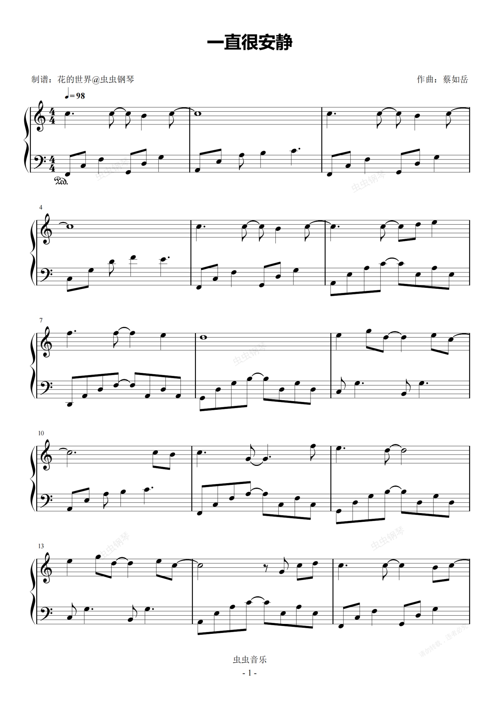 钢琴谱:一直很安静 C调简易版 阿桑 流行经典