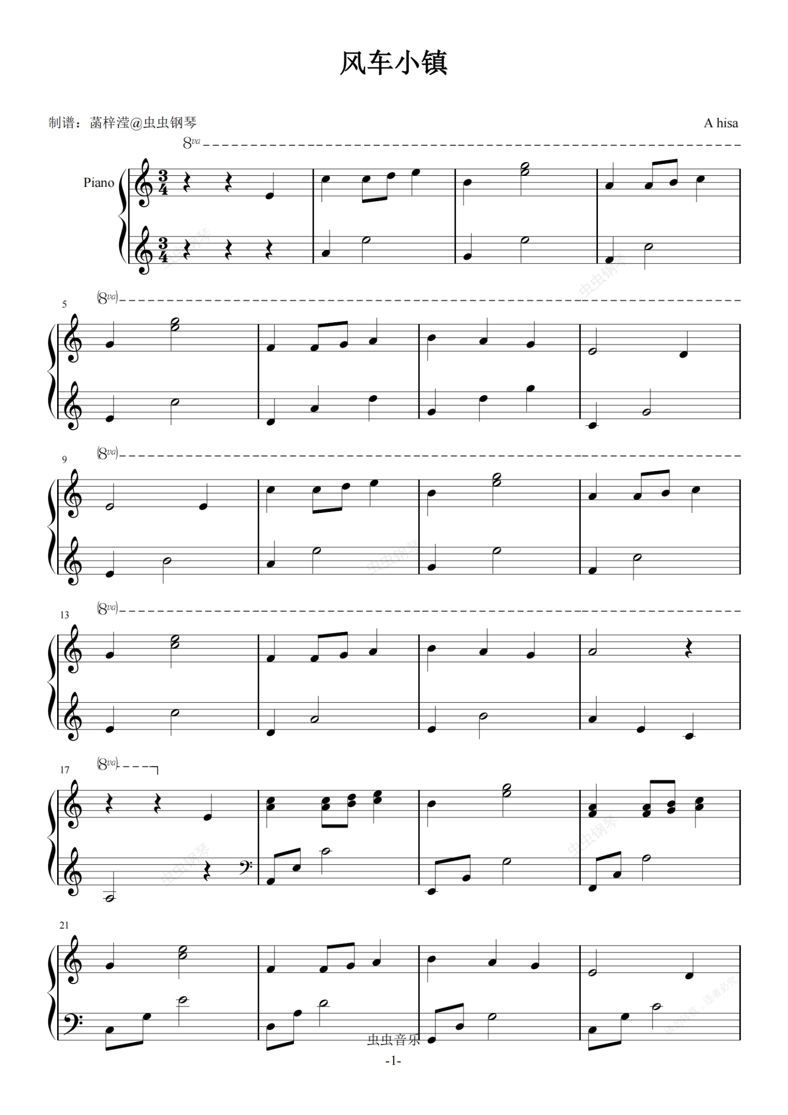 钢琴谱:风车小镇