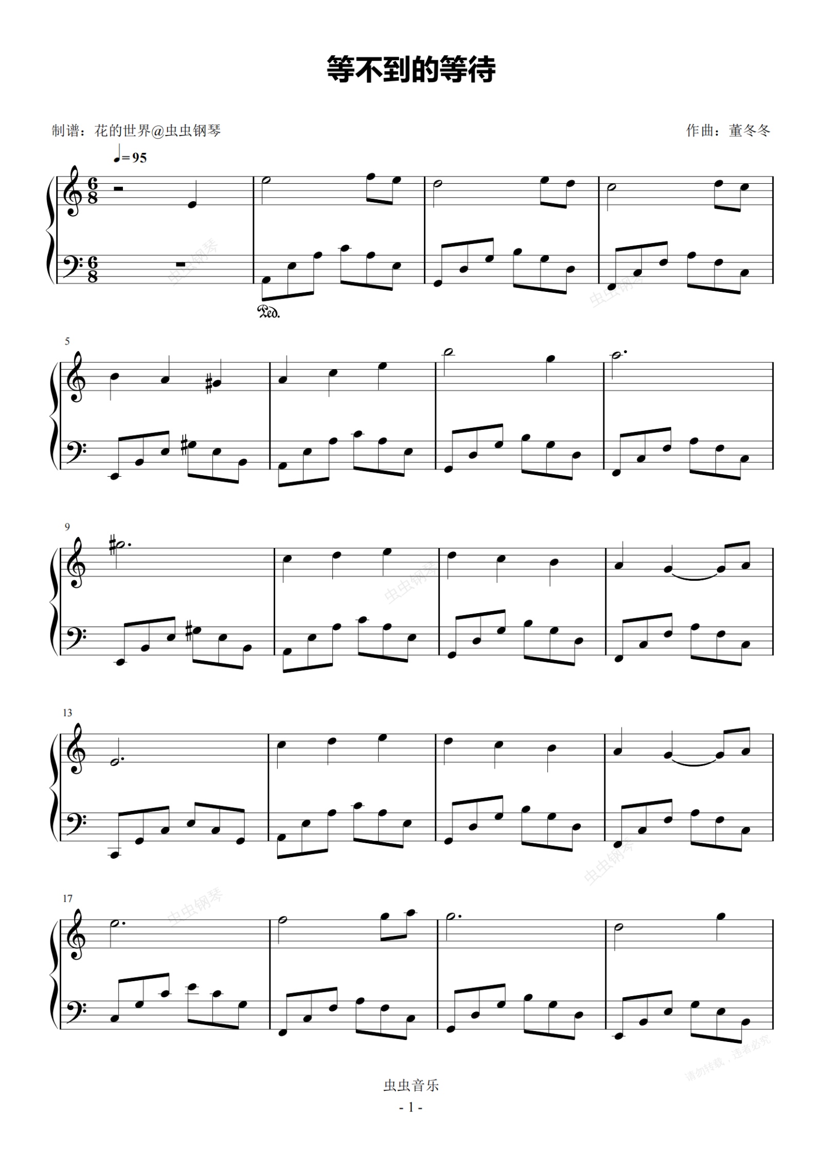 钢琴谱:等不到的等待 C调简易版 檀健次