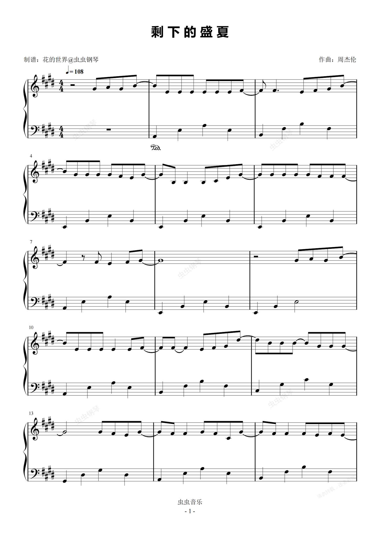 钢琴谱:剩下的盛夏 原调简易版 TFBOYS