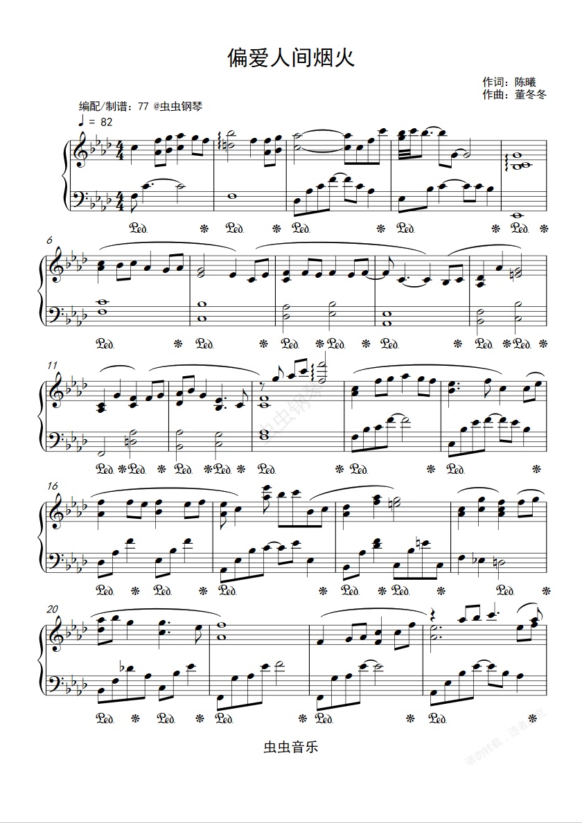钢琴谱:《偏爱人间烟火》胡夏&张紫宁 原调 (《长相思》电视剧片尾曲)