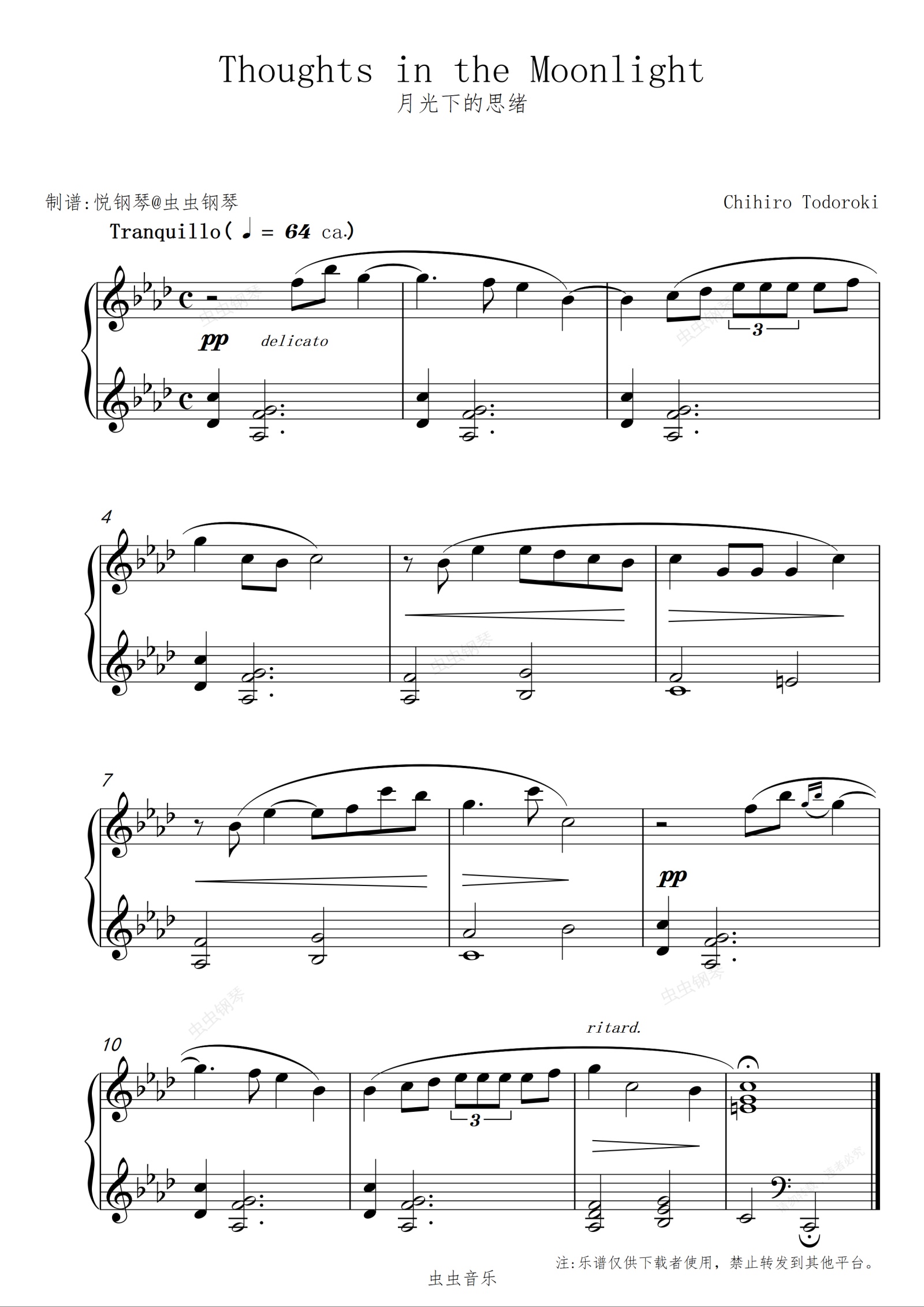 钢琴谱:月光下的思绪//Thoughts in the Moonlight-免费乐谱【思绪】