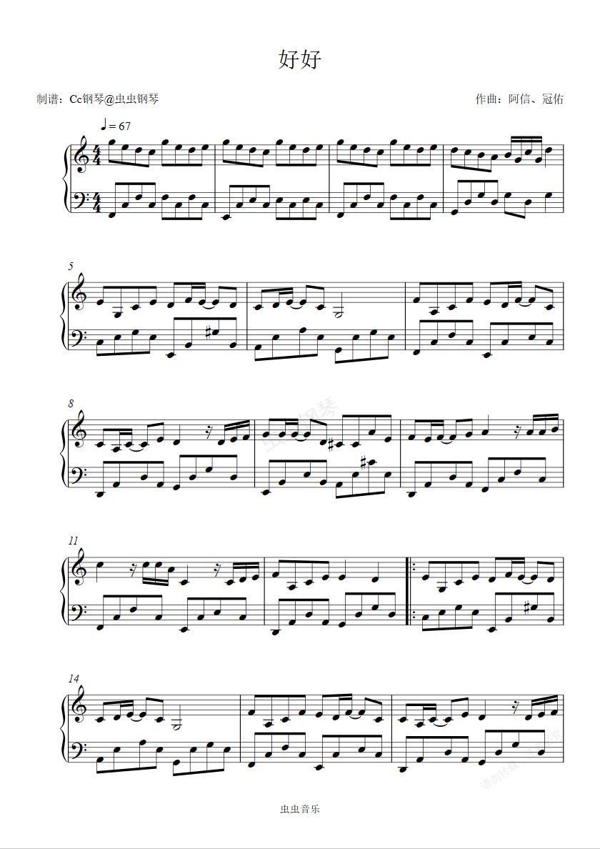 钢琴谱:好好 C调 好听易上手