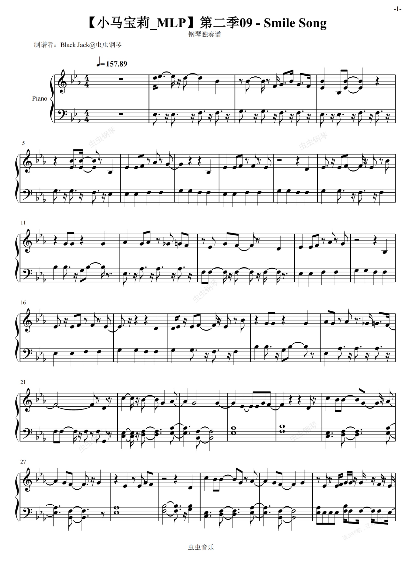钢琴谱:【小马宝莉_MLP_My Little Pony】第二季09 - The Smile Song Piano