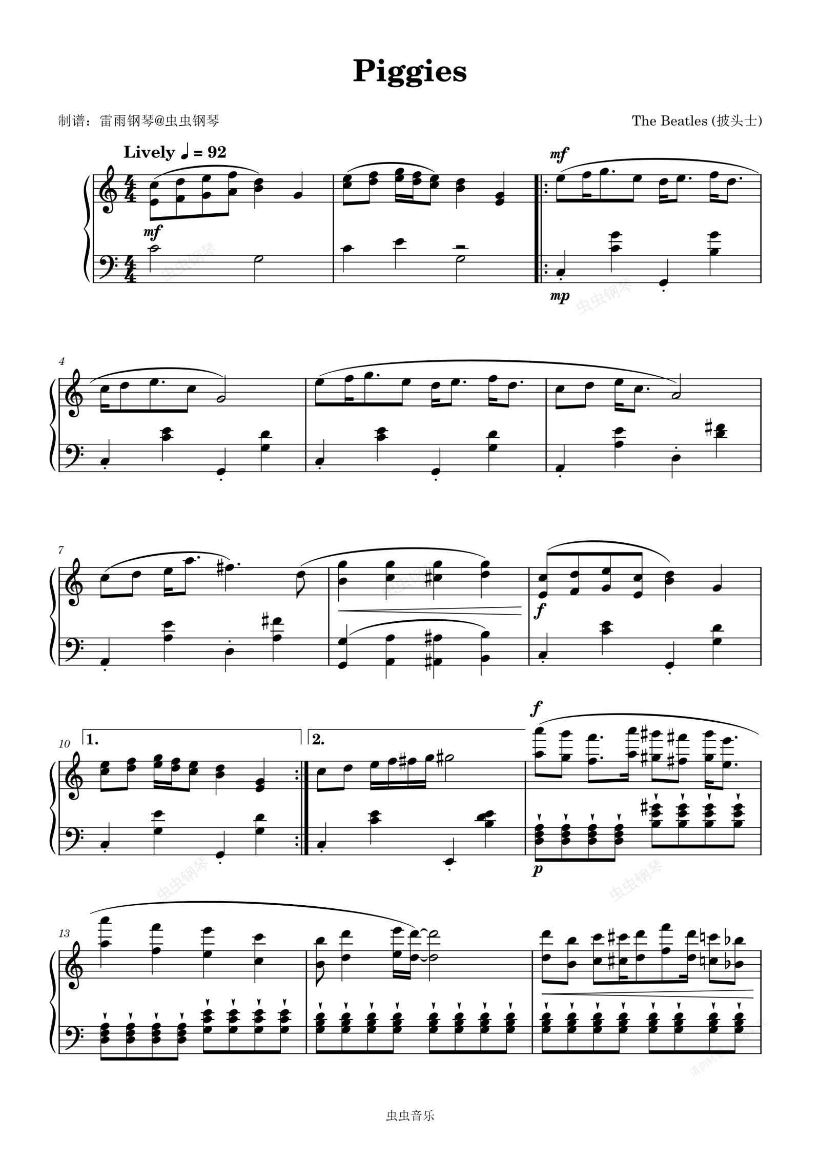 钢琴谱:Piggies - The Beatles (披头士)