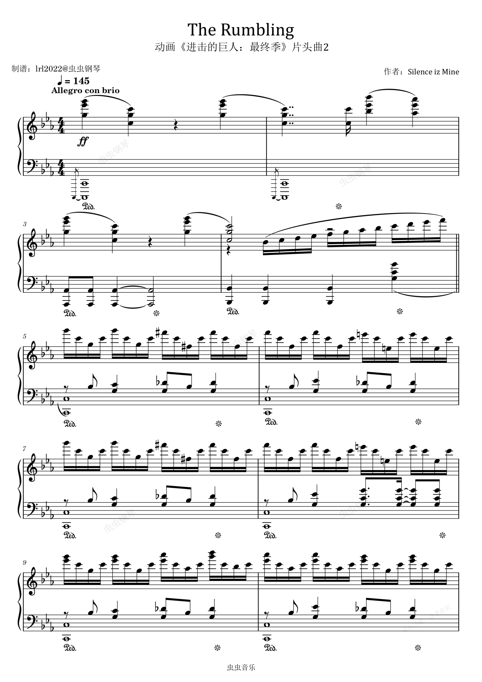 钢琴谱:The Rumbling -《进击的巨人:最终季》片头曲2 - 钢琴独奏
