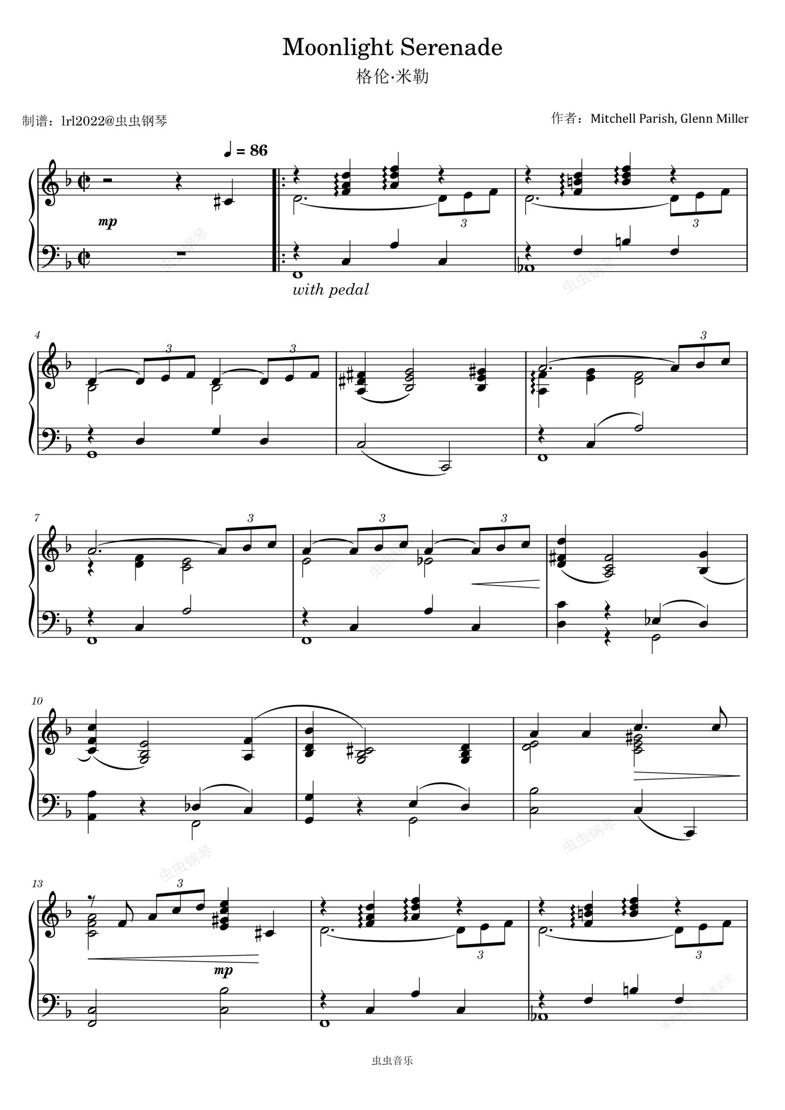 钢琴谱:Moonlight Serenade - 月光小夜曲 钢琴独奏 - Glenn Miller