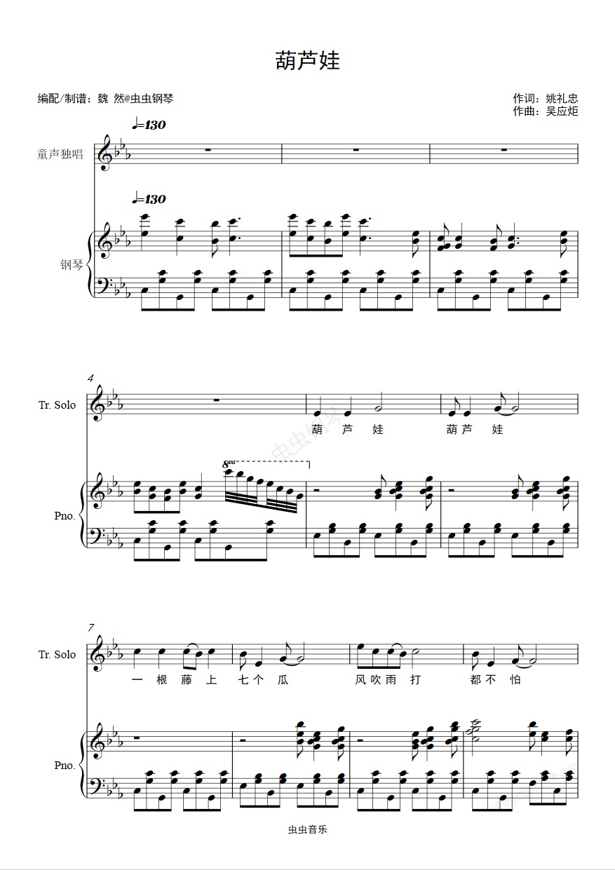 钢琴谱:【葫芦兄弟】葫芦娃(正谱)——『忧伤歌声』
