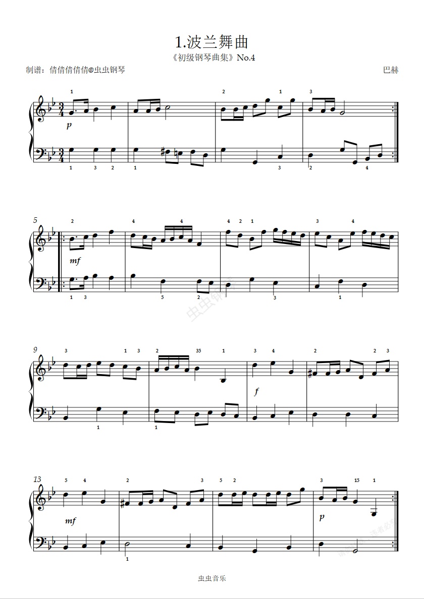 钢琴谱:2级 B项 1.波兰舞曲