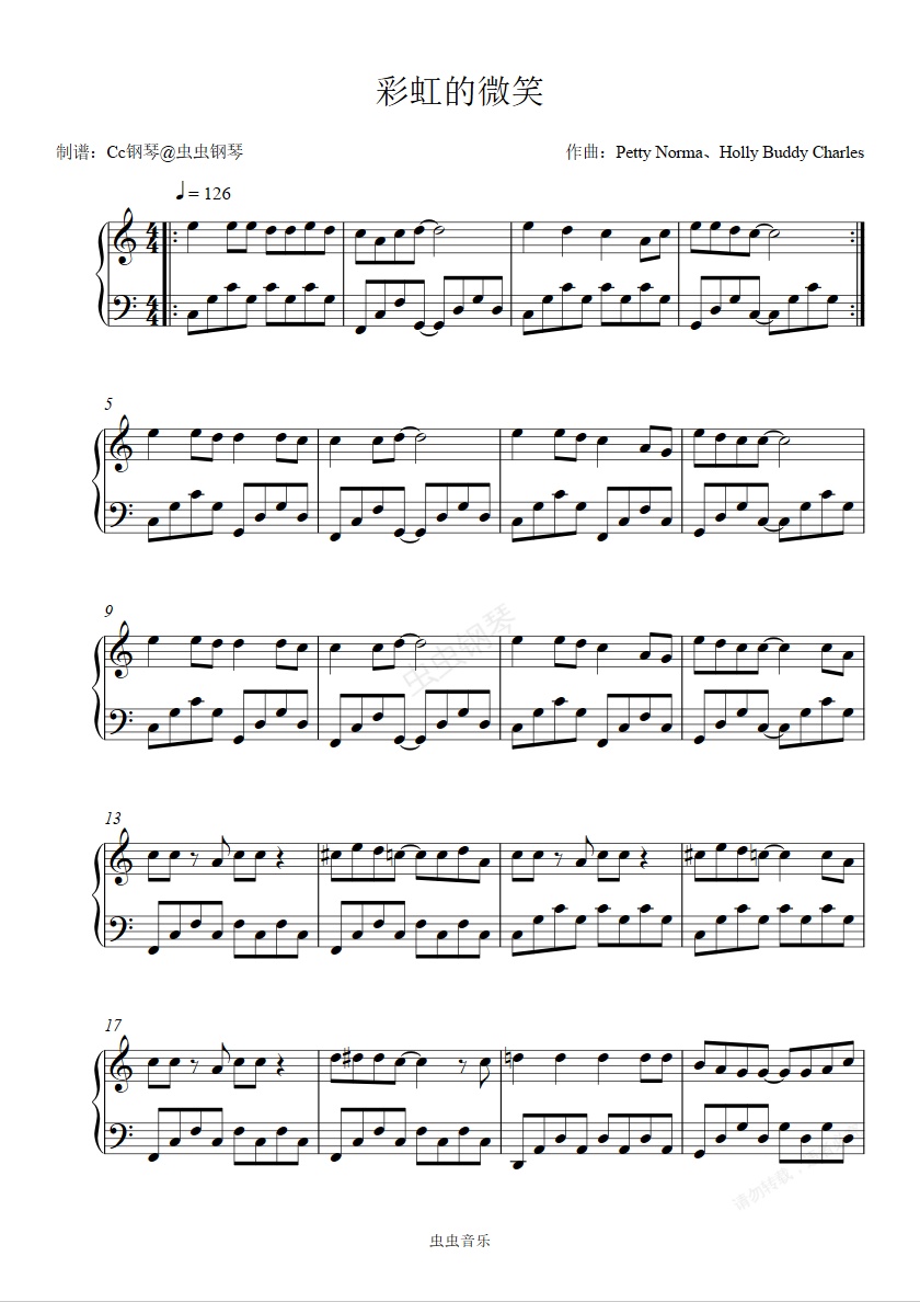 钢琴谱:彩虹的微笑 C调 好听易上手