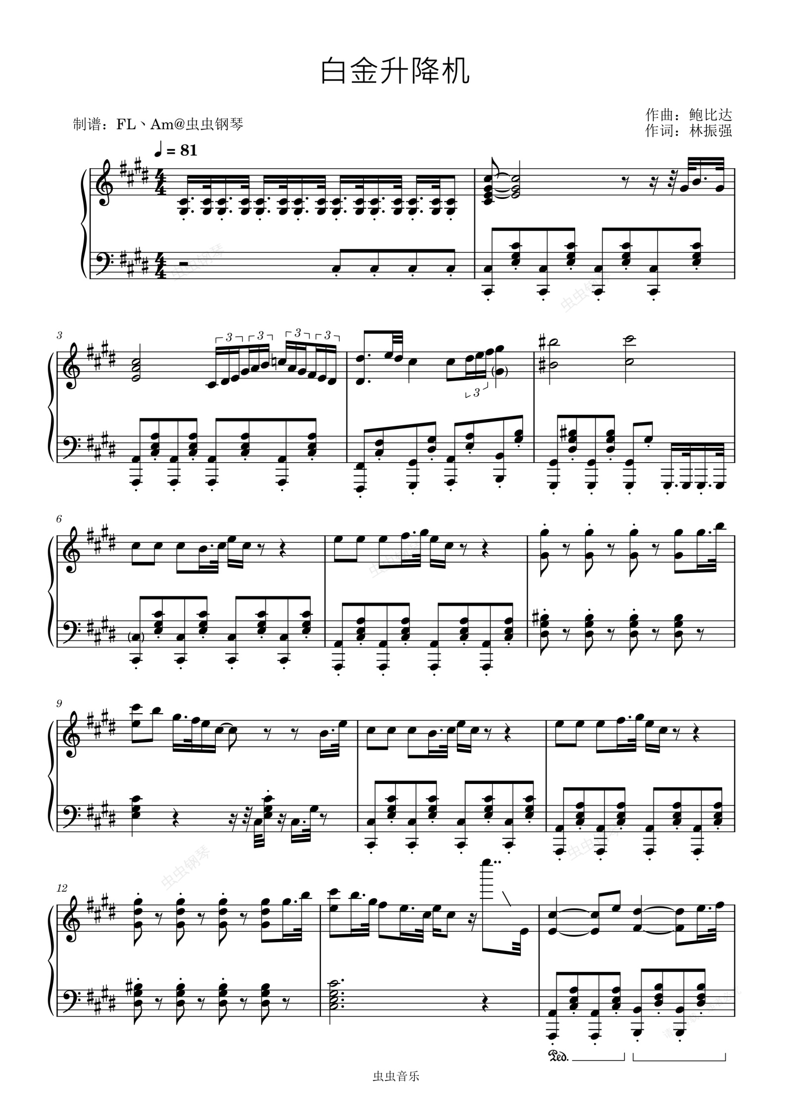 钢琴谱:白金升降机