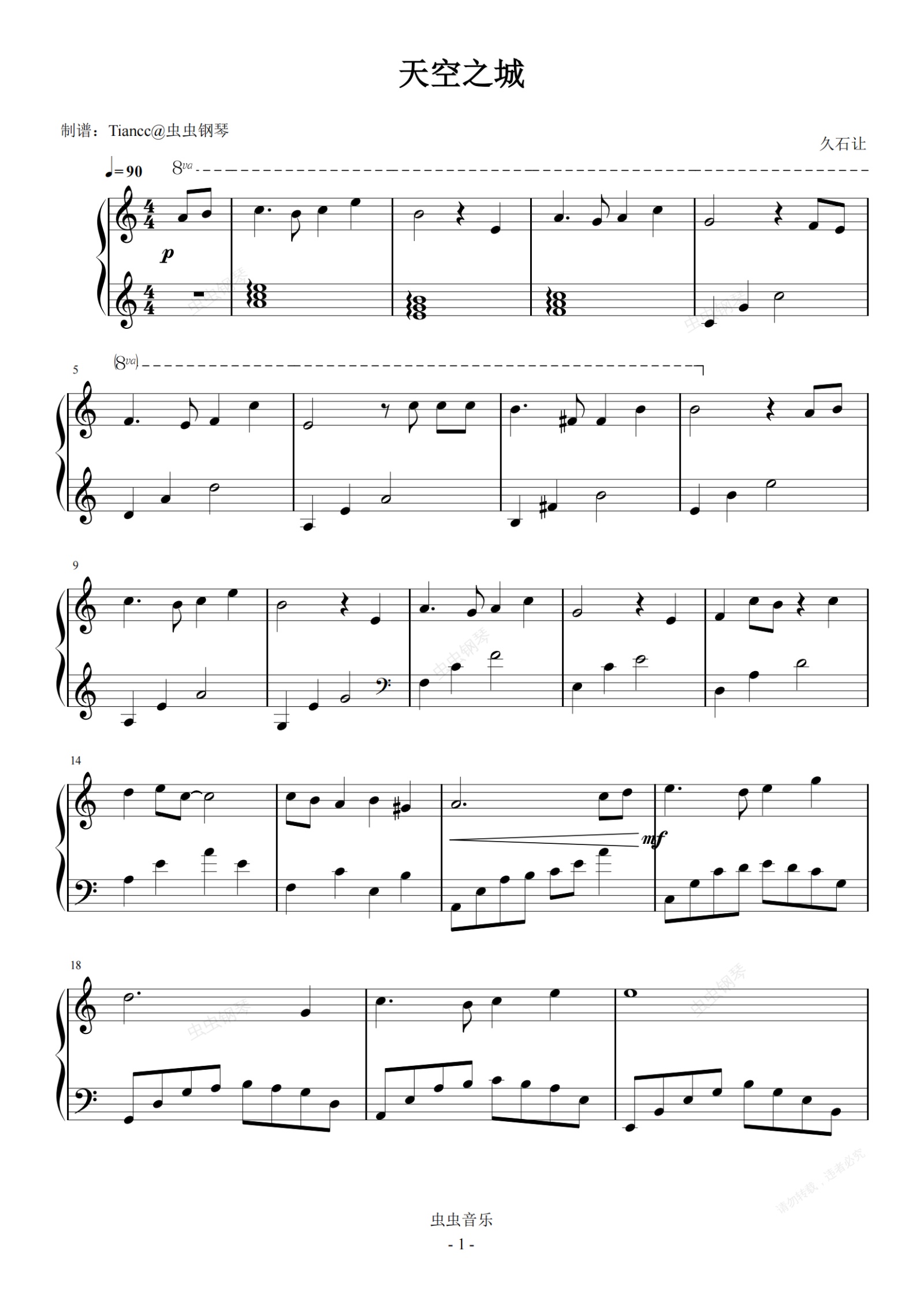 钢琴谱:《天空之城》成人教学专用,拜厄+难度