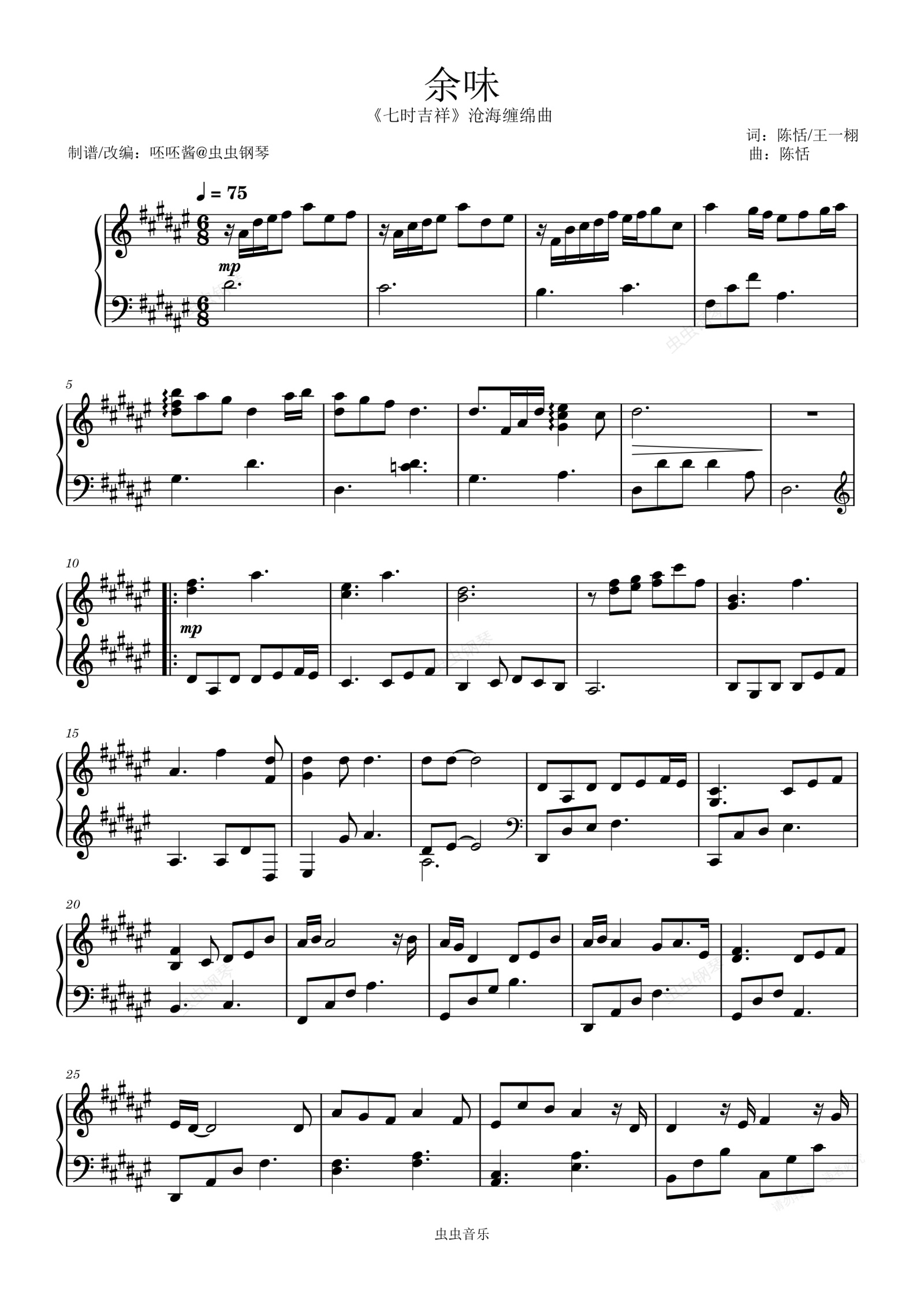 钢琴谱:余味【独奏改编版】《七时吉祥》沧海缠绵曲-单依纯
