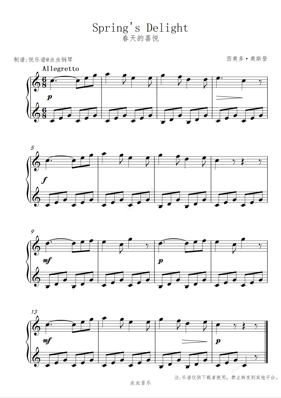 钢琴谱:春天的喜悦//Spring's Delight-免费乐谱【清新】