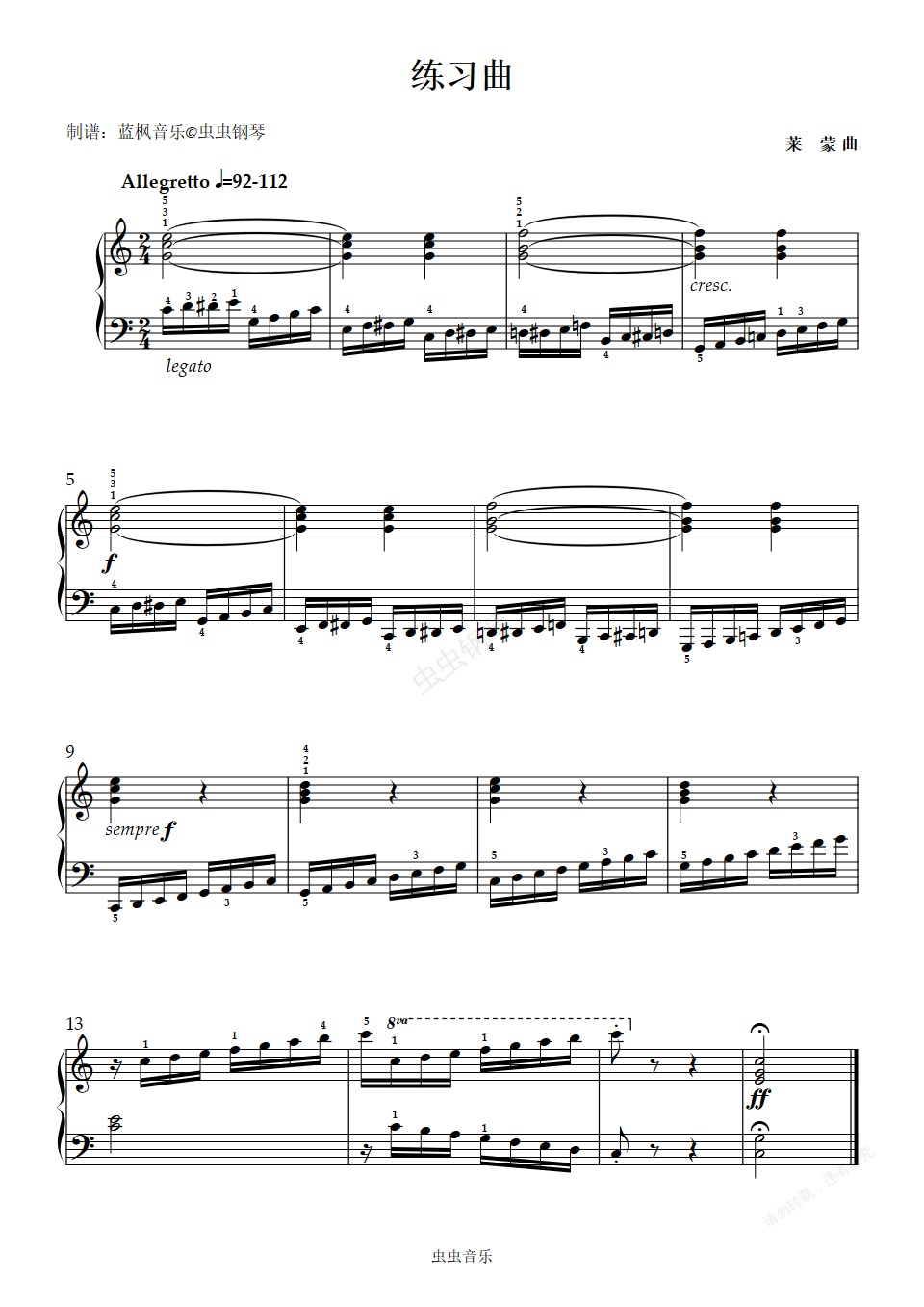 钢琴谱:第四级 练习曲 莱蒙Op.37 No.5