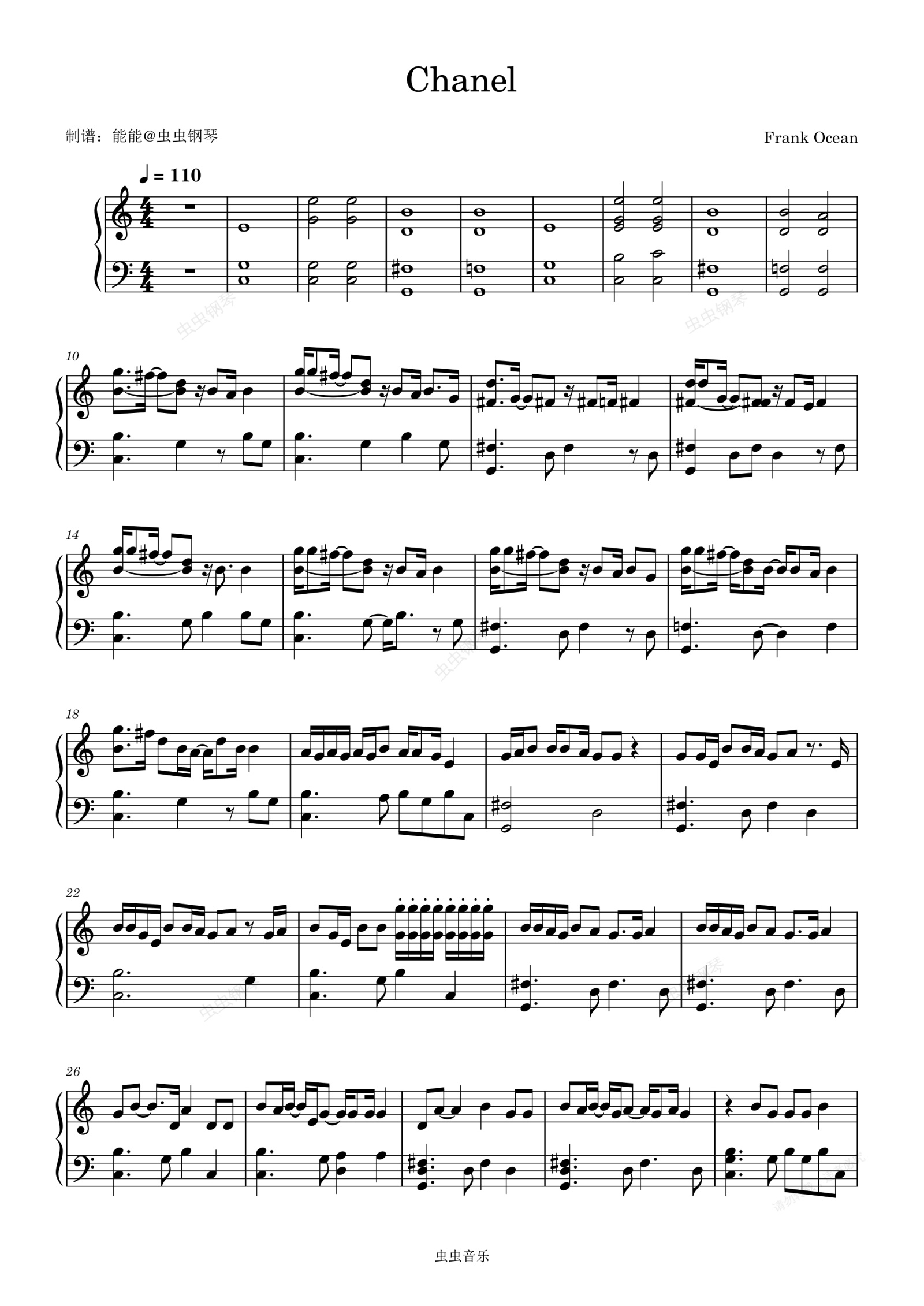 钢琴谱:Chanel (Explicit) - Frank Ocean