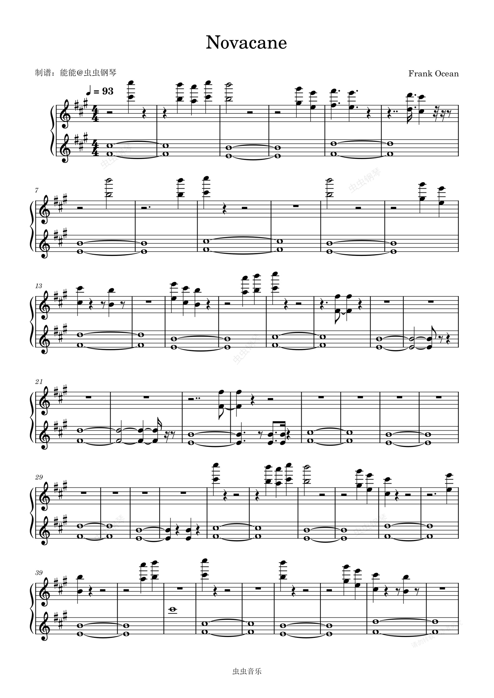钢琴谱:Novacane - Frank Ocean