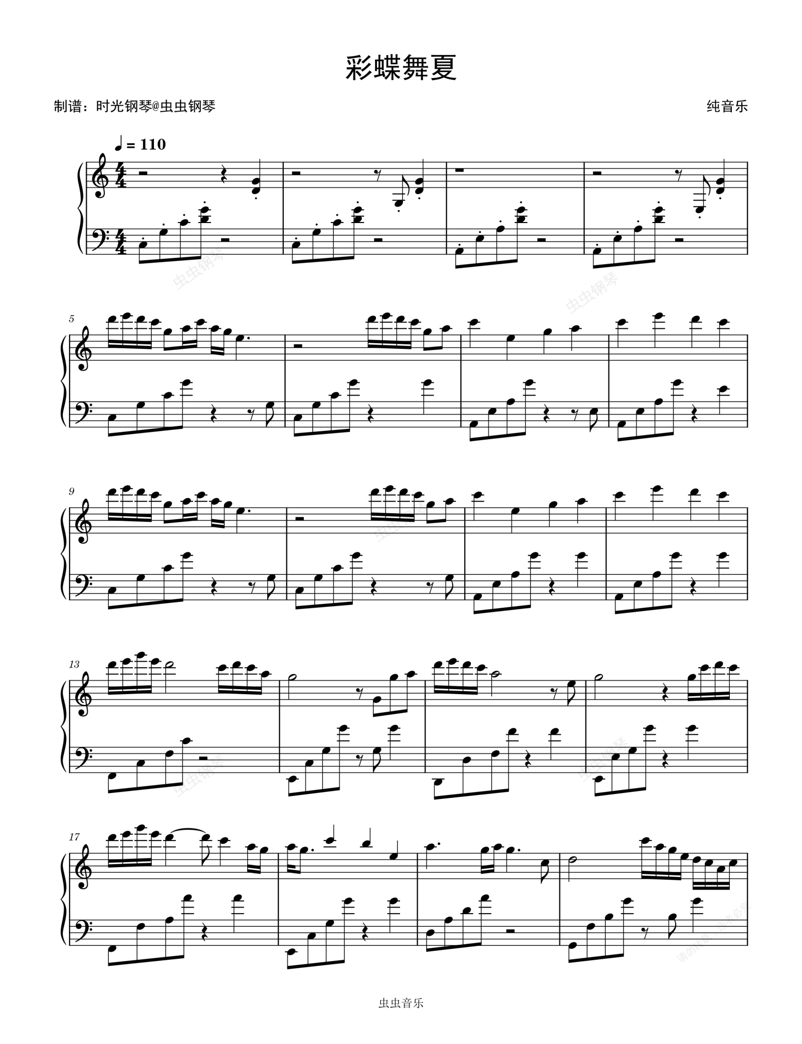 钢琴谱:彩蝶舞夏(C调简易版)舌尖上的中国