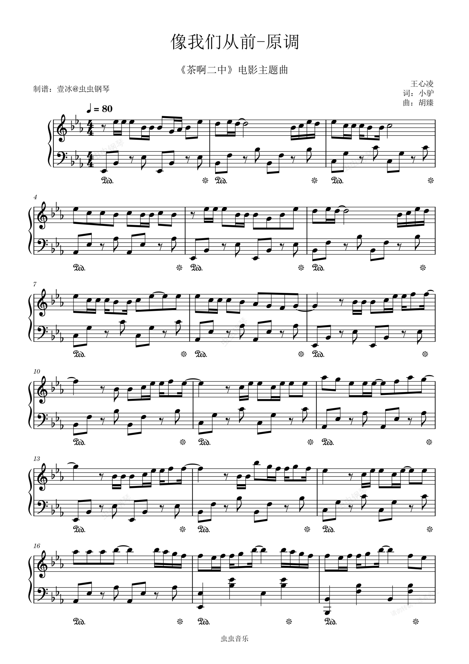 钢琴谱:像我们从前 (《茶啊二中》电影主题曲)王心凌 - 原调