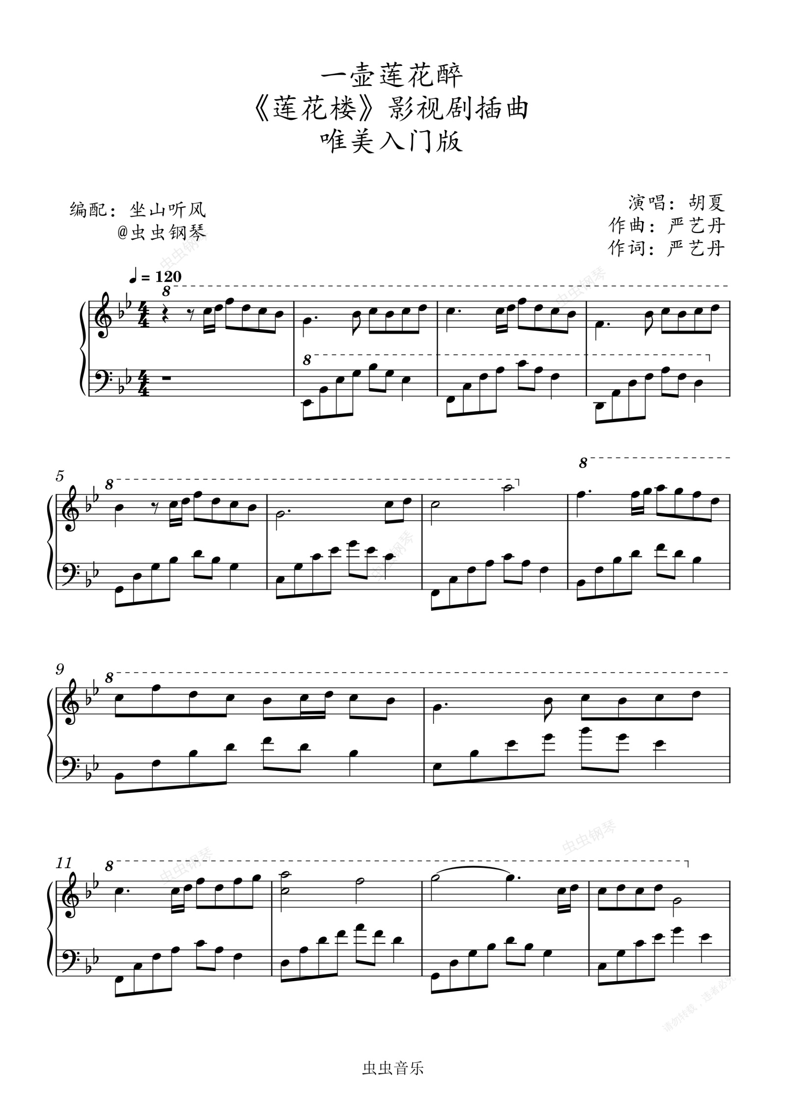 钢琴谱:一壶莲花醉——《莲花楼》影视剧插曲【 唯美入门版】
