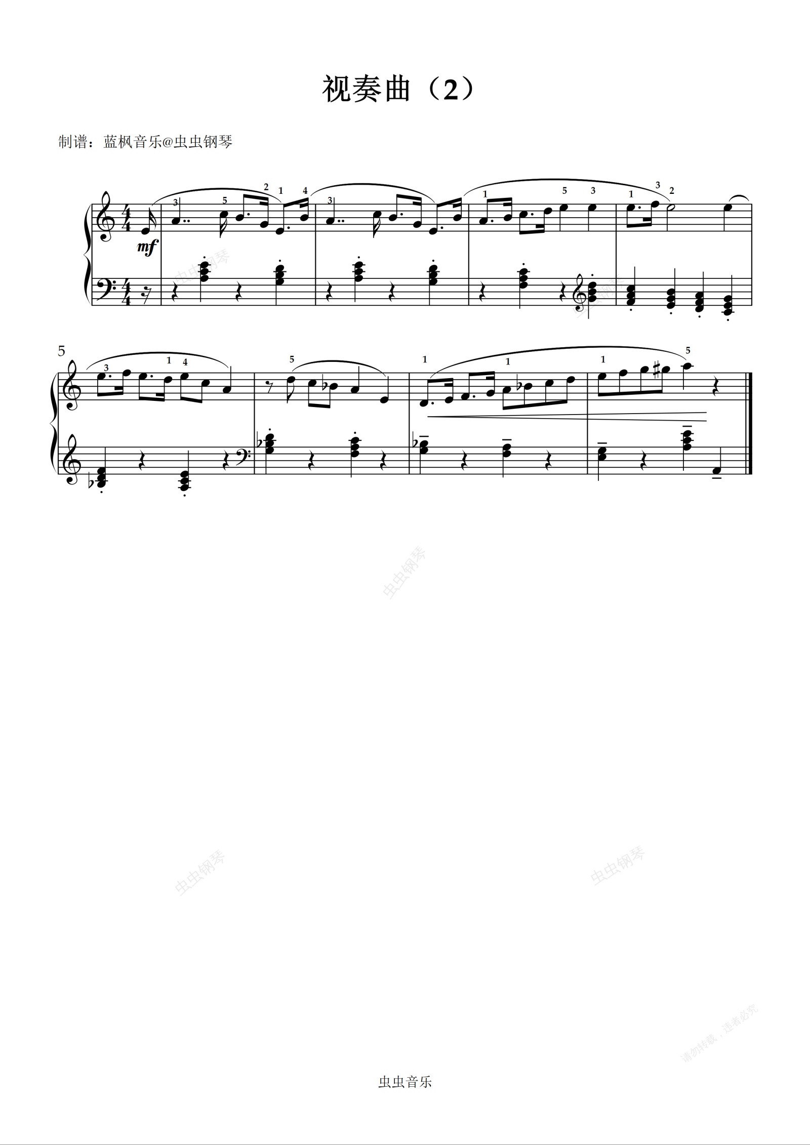 您的位置: 首页 > 钢琴谱库 > 视奏曲(2)钢琴谱-佚名