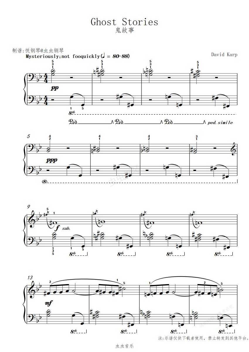 钢琴谱:鬼故事//Ghost Stories【恐惧】